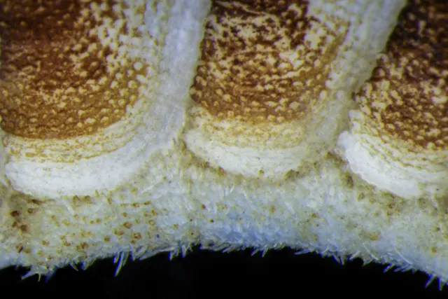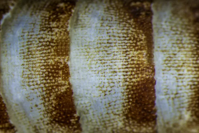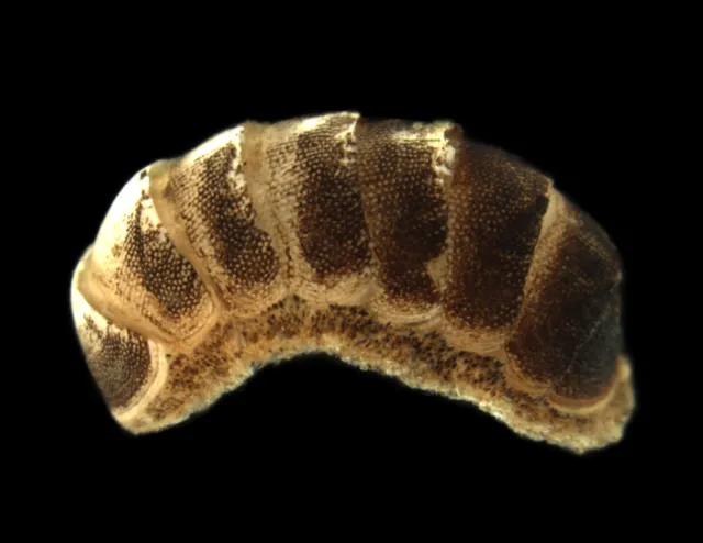 Granulene på midten av skallplatene hos Leptochiton sarsi er ordnet i parallelle rekker.