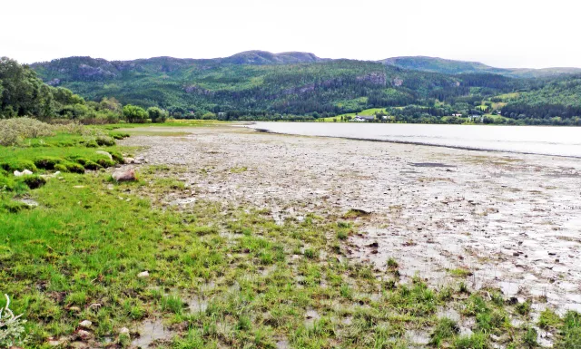 Elatine-artene vokser på finkornet bunn i ferskvann og på strender som tørrlegges i deler av vekstperioden. Høylandet, Eidsvatnet (Nord-Trøndelag).