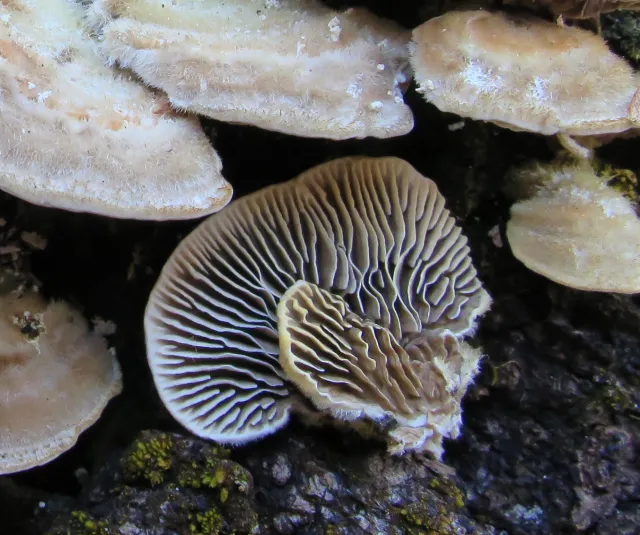 Lameller i porelaget, her hos bjørkemusling Trametes betulina.