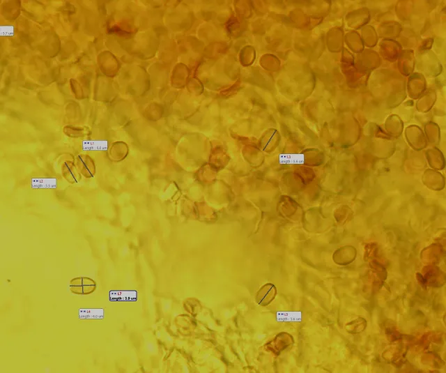 Reaksjon med melzers. Dextrinoide sporer.