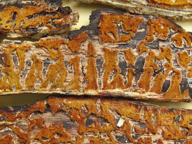 Med alderen sprekker porelaget til krympekjuke Ceriporiopsis guidella opp i et firkanta mønster. Bildet er tatt sør for Eigelandsdalen i Lyngdal i 2015.