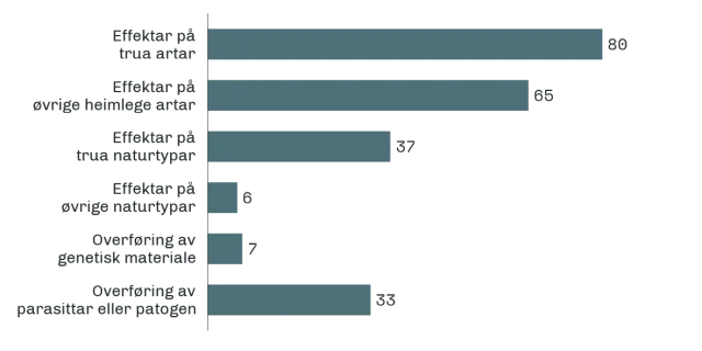 Nesten 40 dørstokkartar i høgrisikogruppa er forventa å ha ein negativ påverknad på trua naturtypar. I dei fleste tilfella skuldast dette at den framande arten fører til endra artssamansetjing i naturtypen.