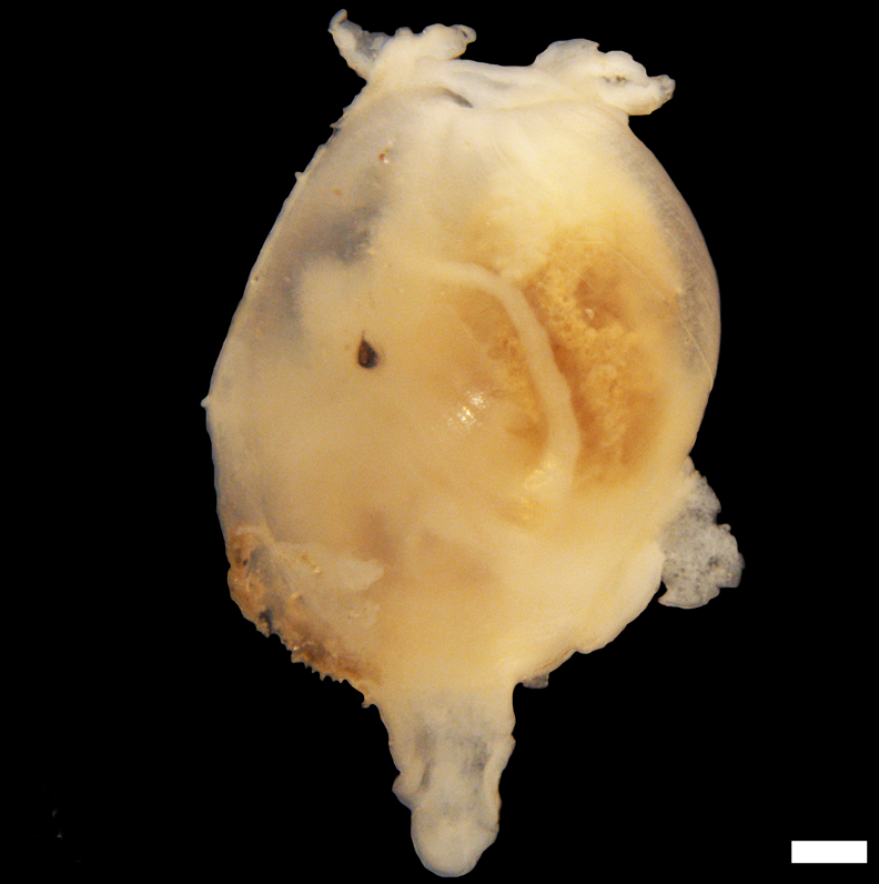 Dyrets dorsalside, målestokk = 0,5 mm.