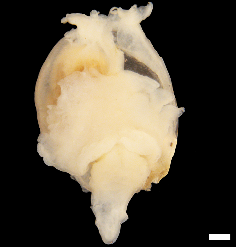 Skallets ventralside (automontage bilde), målestokk = 0,5 mm.