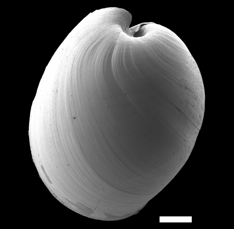Skallets dorsalside (SEM), målestokk = 0,5 mm.