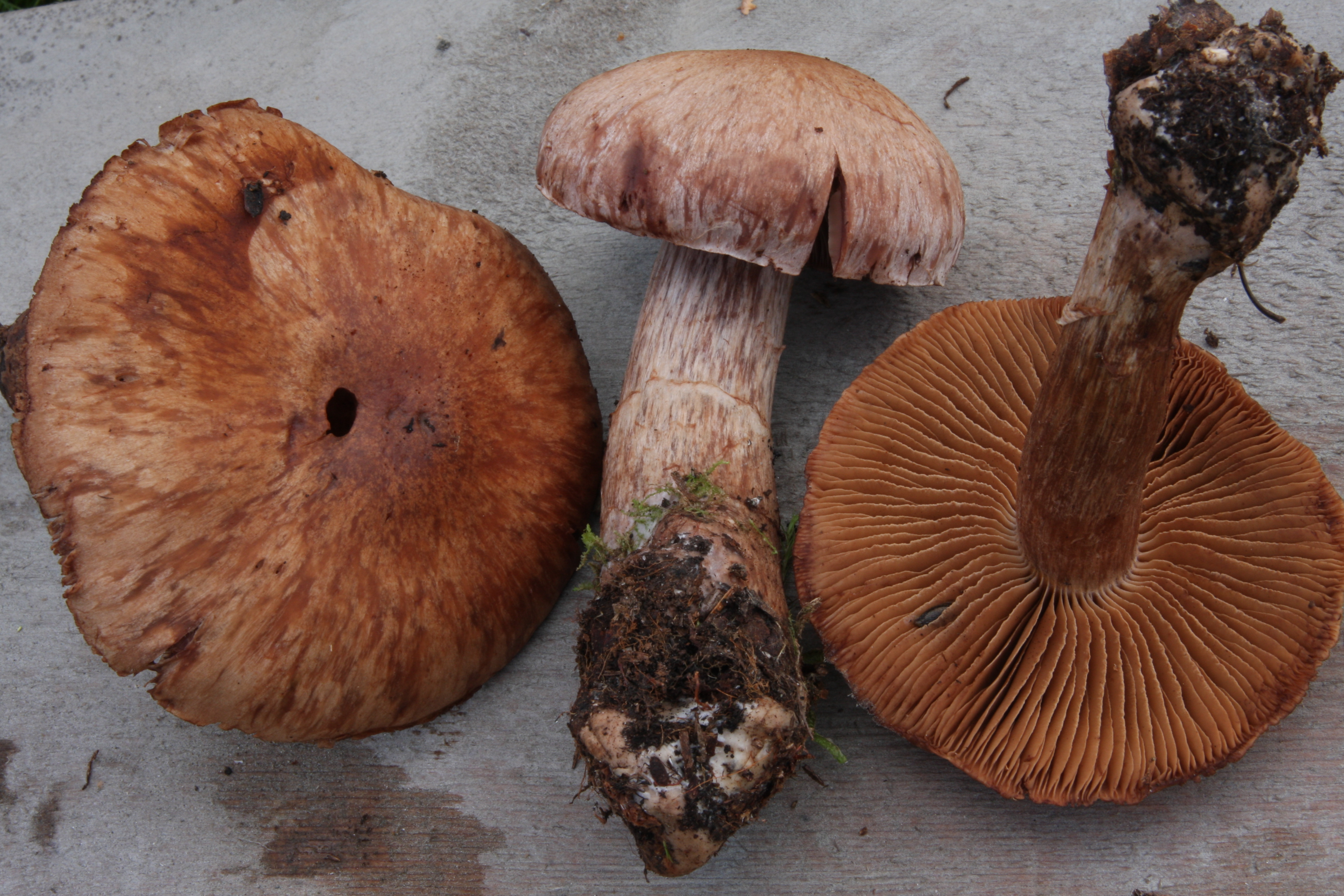 Gubbeslørsopp er en stor og kjøttfull, brun art med innvokst trådet hatt og oppsvulmet fot.