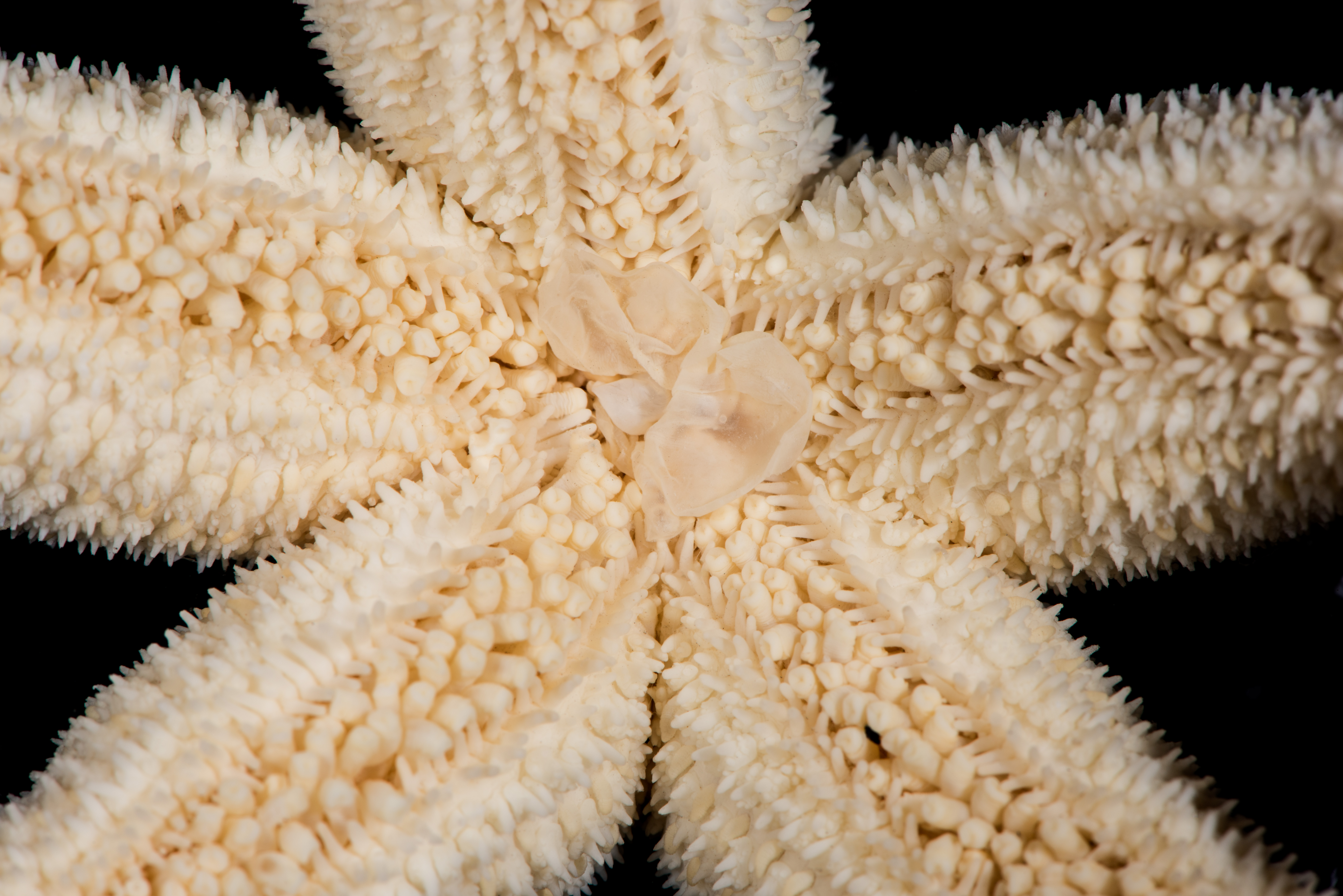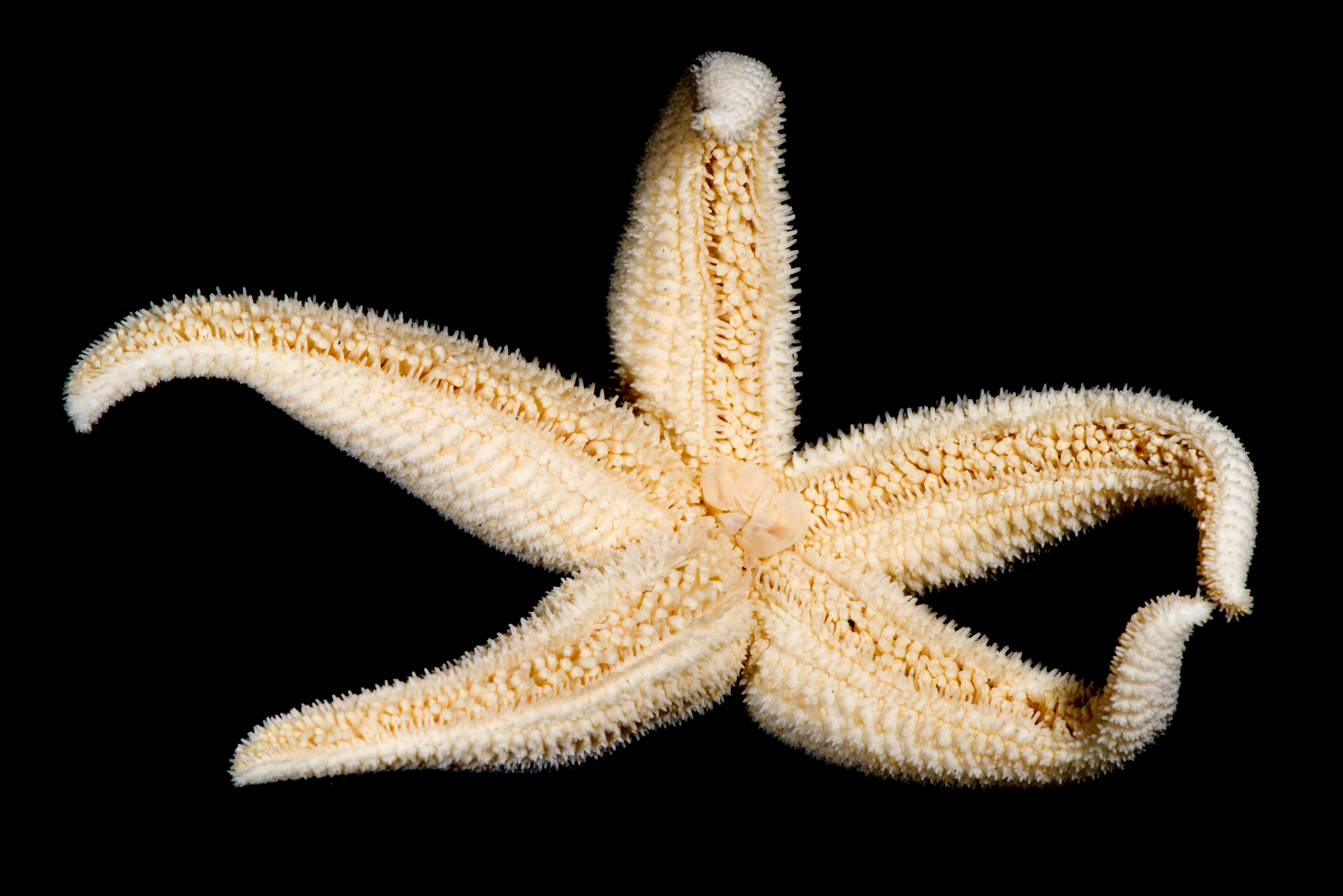 L. groenlandica: dorsale pigger i små grupper. Fravær av kryssede gripetenger rundt adambulakralpiggene.
