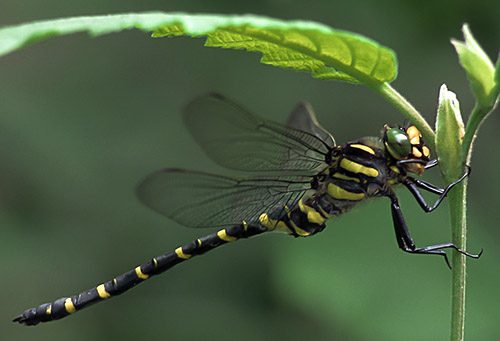 Hann av kongelibelle Cordulegaster boltonii. Arten er en av våre største øyenstikkere og lett kjennelig på størrelsen og den helsvarte kroppen med klargule flekker. Den patruljerer gjerne langs mindre elver.