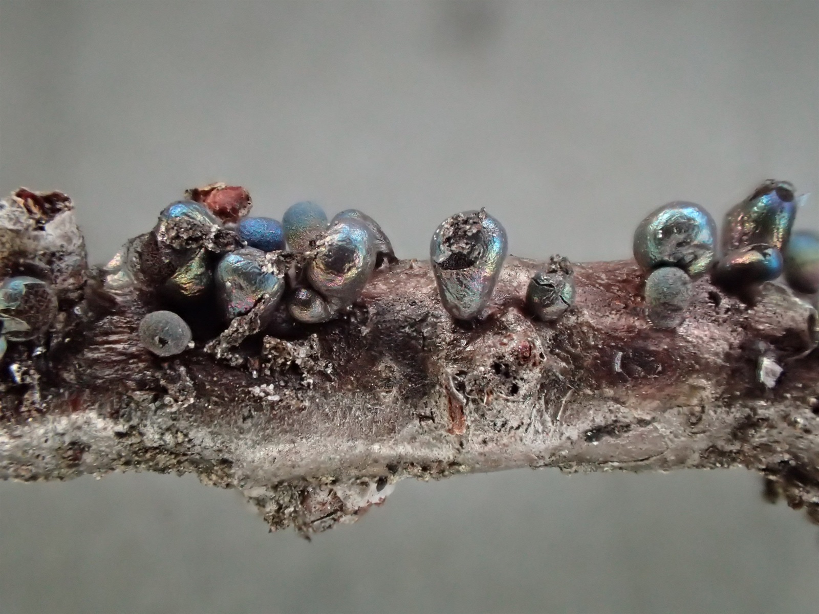 Sporokarper i ferd med å sprekke opp.
