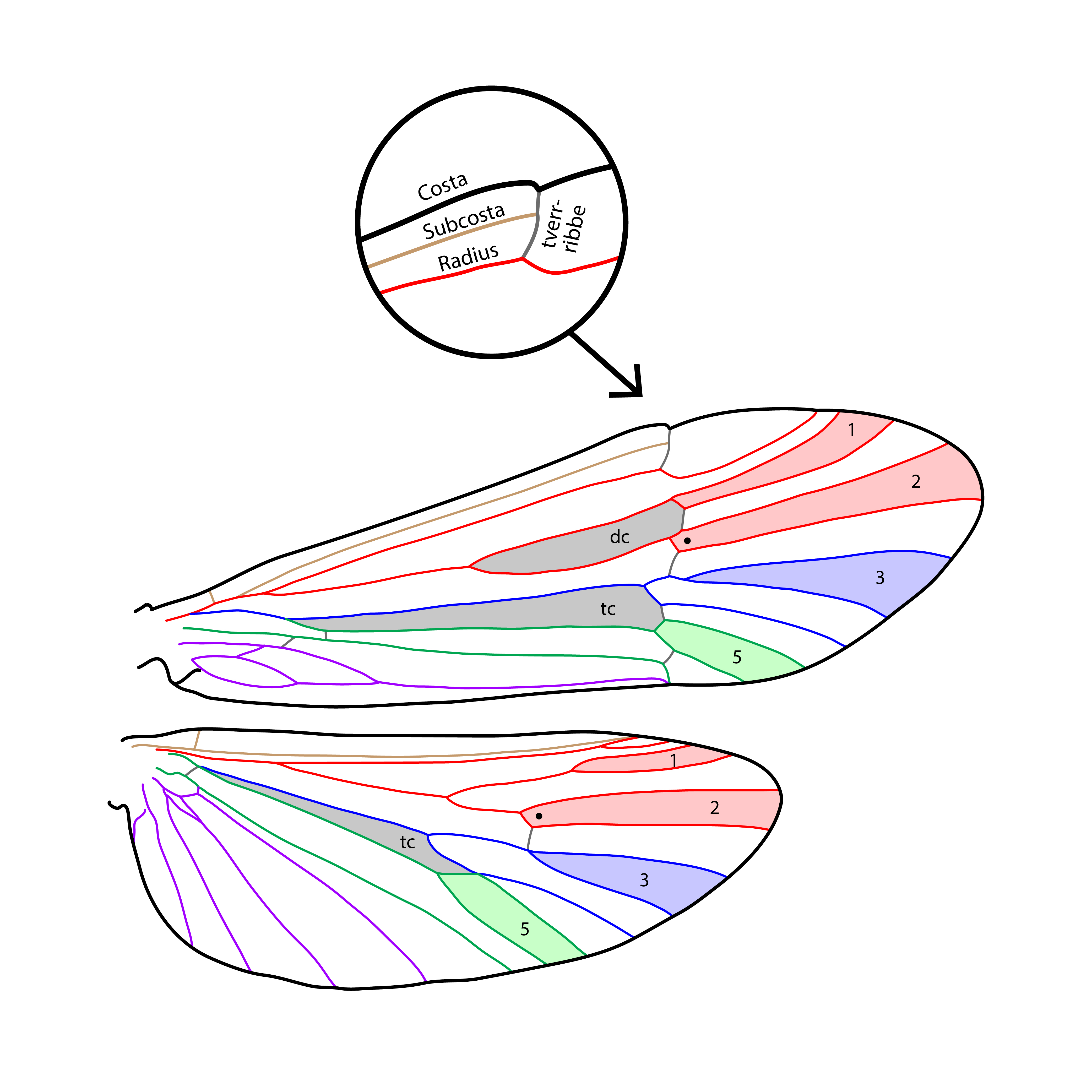 Familien Apataniidae kan skilles fra andre vårfluefamilier ved at framvingens Subcosta ender i en tverribbe som går mellom Costa og Radius.