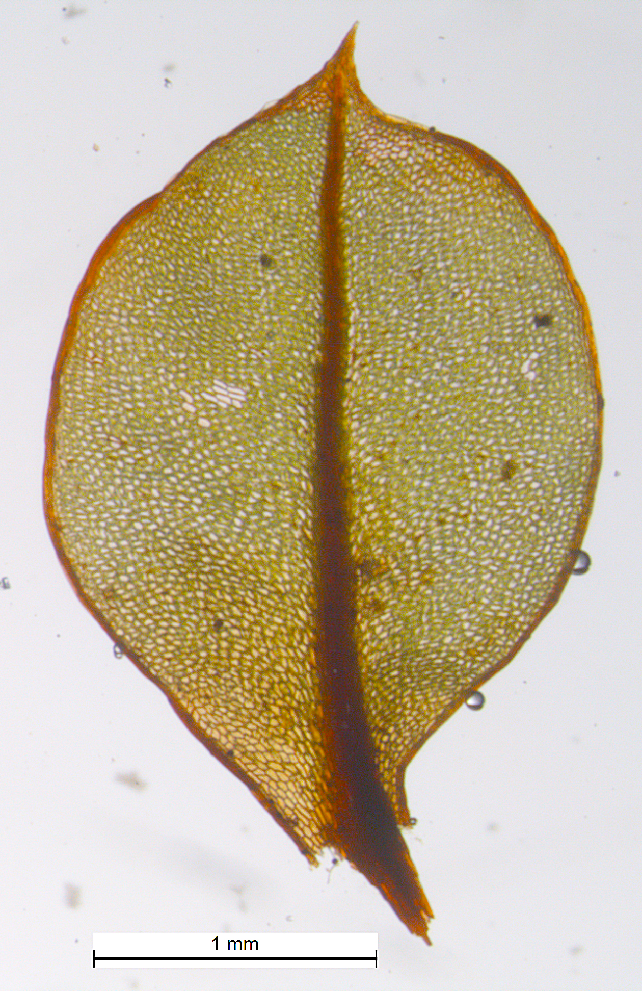 Blad elliptisk, ovale og går ut i en lang smal spiss. Cellene i bladspissen er lange og smale.