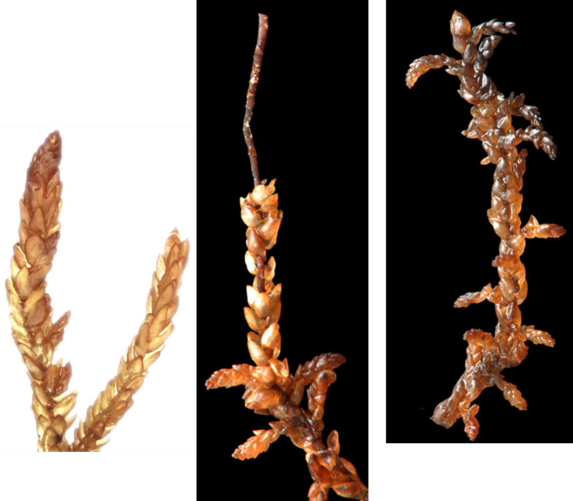 Skudd på geogen flatmyr opprette, purpurbrune til brunsvarte, med enkeltgreiner og greinknipper. Skudd i skrånende fukthei liggende, mer rødbrune og ofte lite greinete.