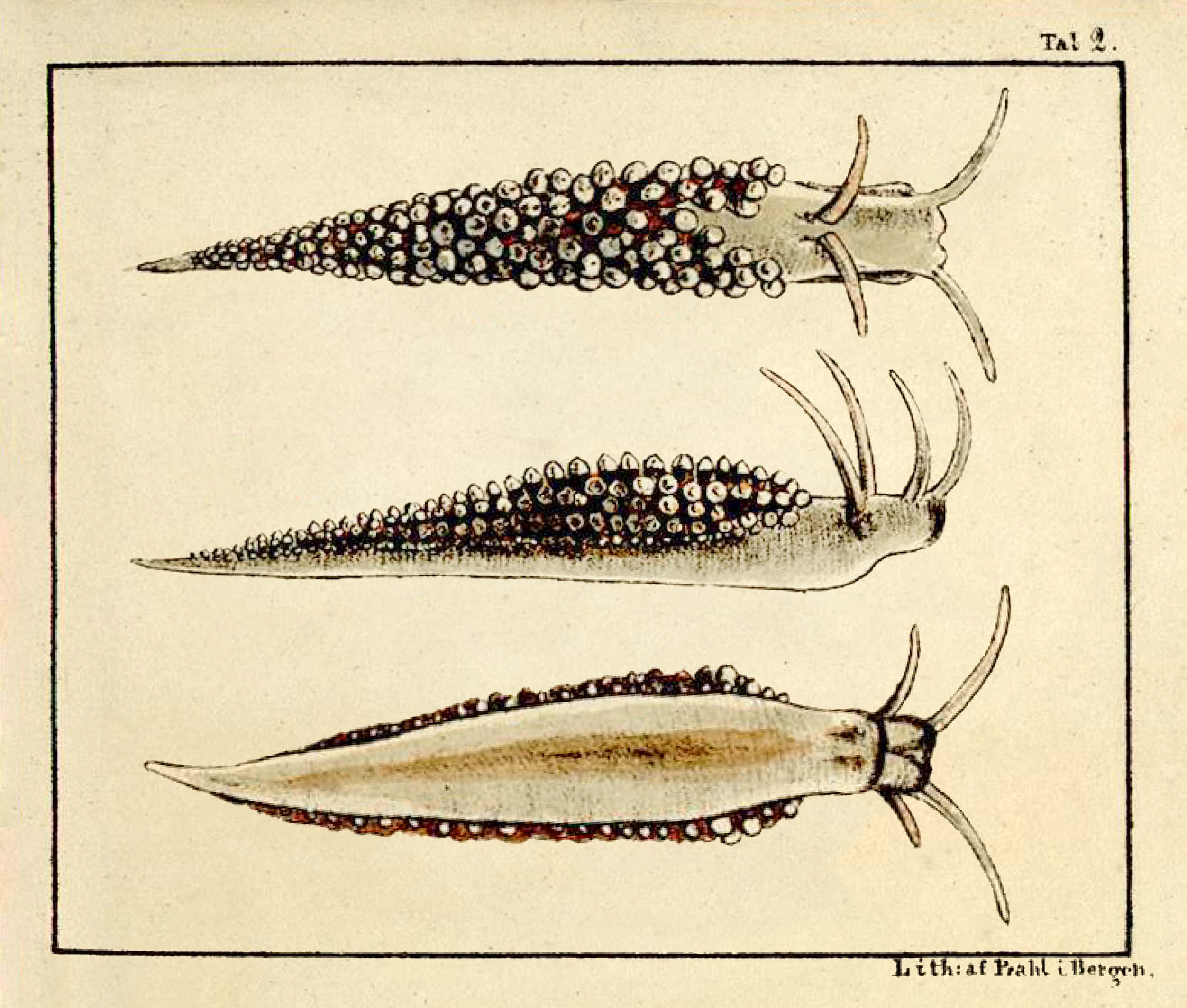 Slik illustrerte Michael Sars arten han beskrev som Eolidia verrucosa i 1829.