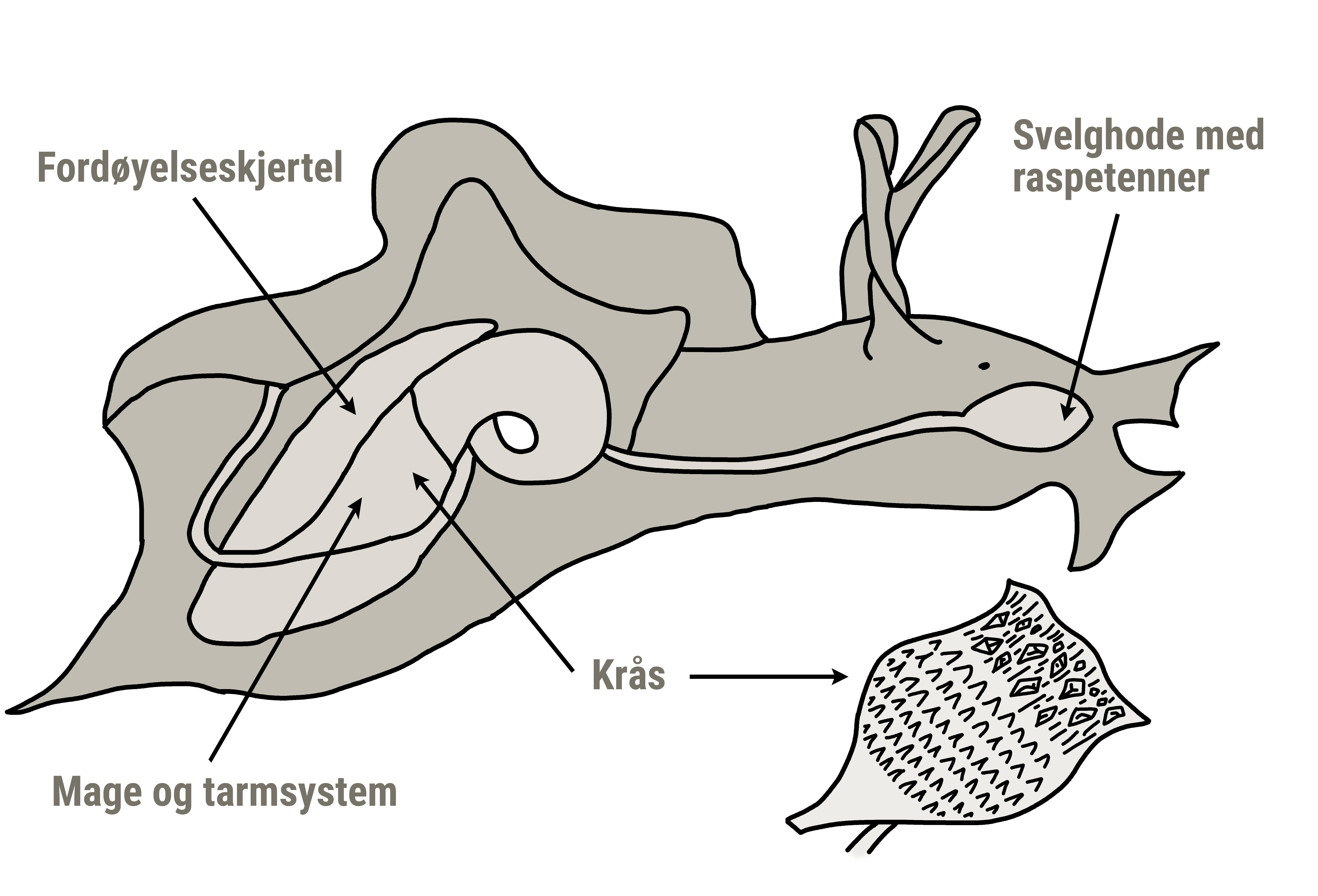 Skjematisk fremstilling av fordøyelsessystemet til sjøharen.