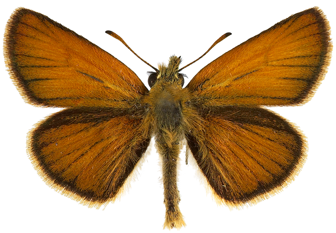 Begge vingepar er gulbrune med brunsvart bestøvning langs ytterkanten og på ribbene. Frynsene er gulhvite. Hos hannen har framvingen en smal, svart duftskjellstrek.