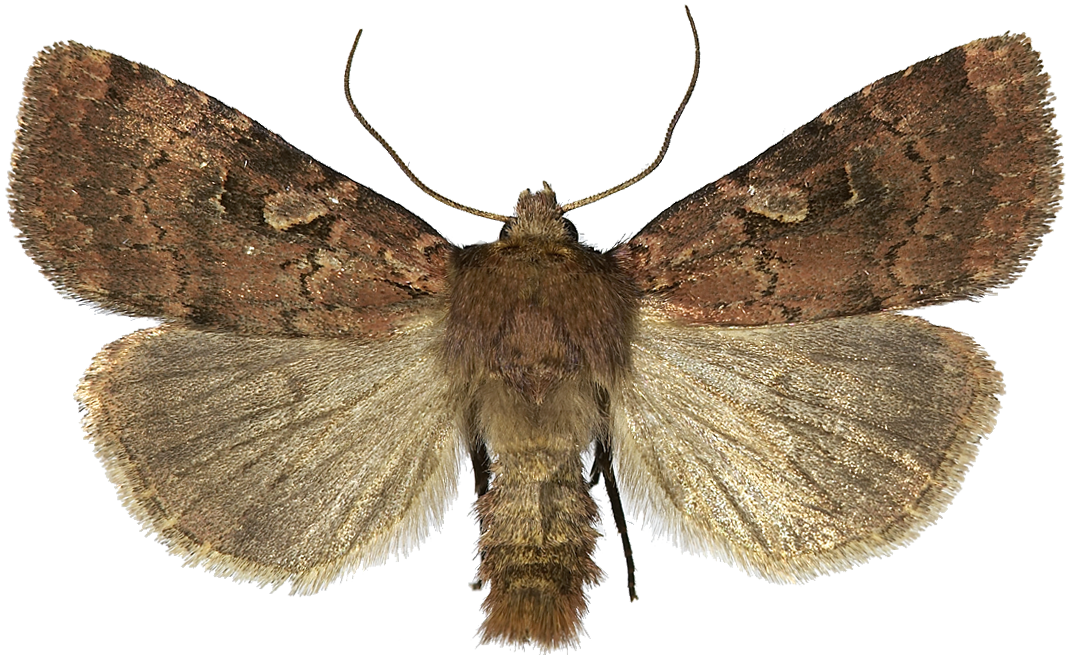 Skiller seg fra @(skogteglfly) ved at framvingen har rotstrek.
