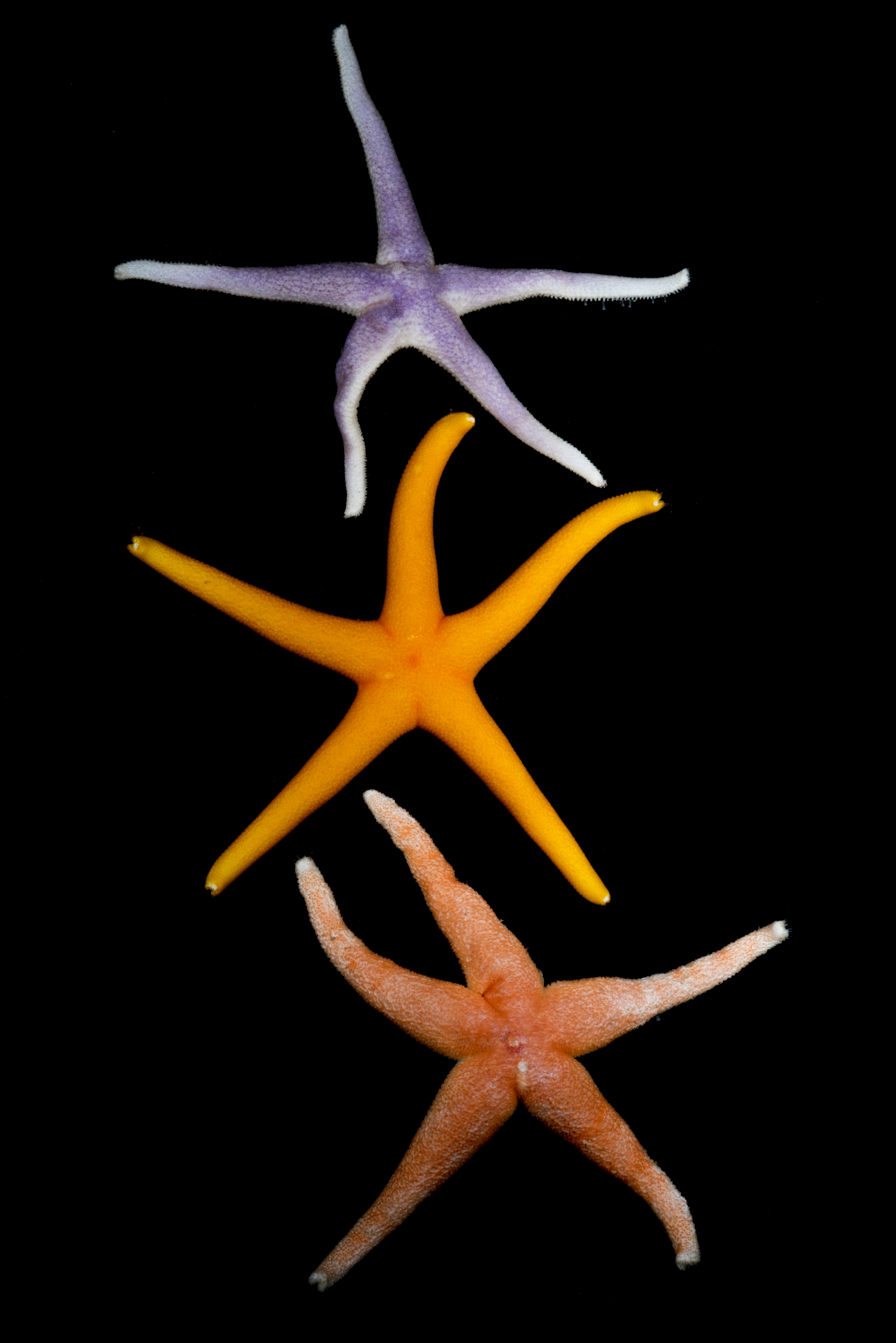 1) Henricia pertusa-gruppen: piggene er spisse, ofte med flere piggspisser på samme pigg.