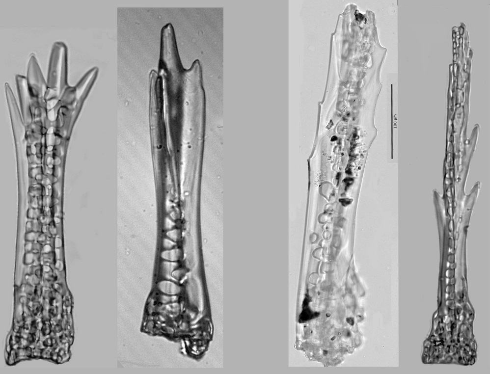 De to piggene til venstre er eksempler på undergruppe 1) med spisse pigger, og de to til høyre er eksempler på undergruppe 2) med butte pigger.