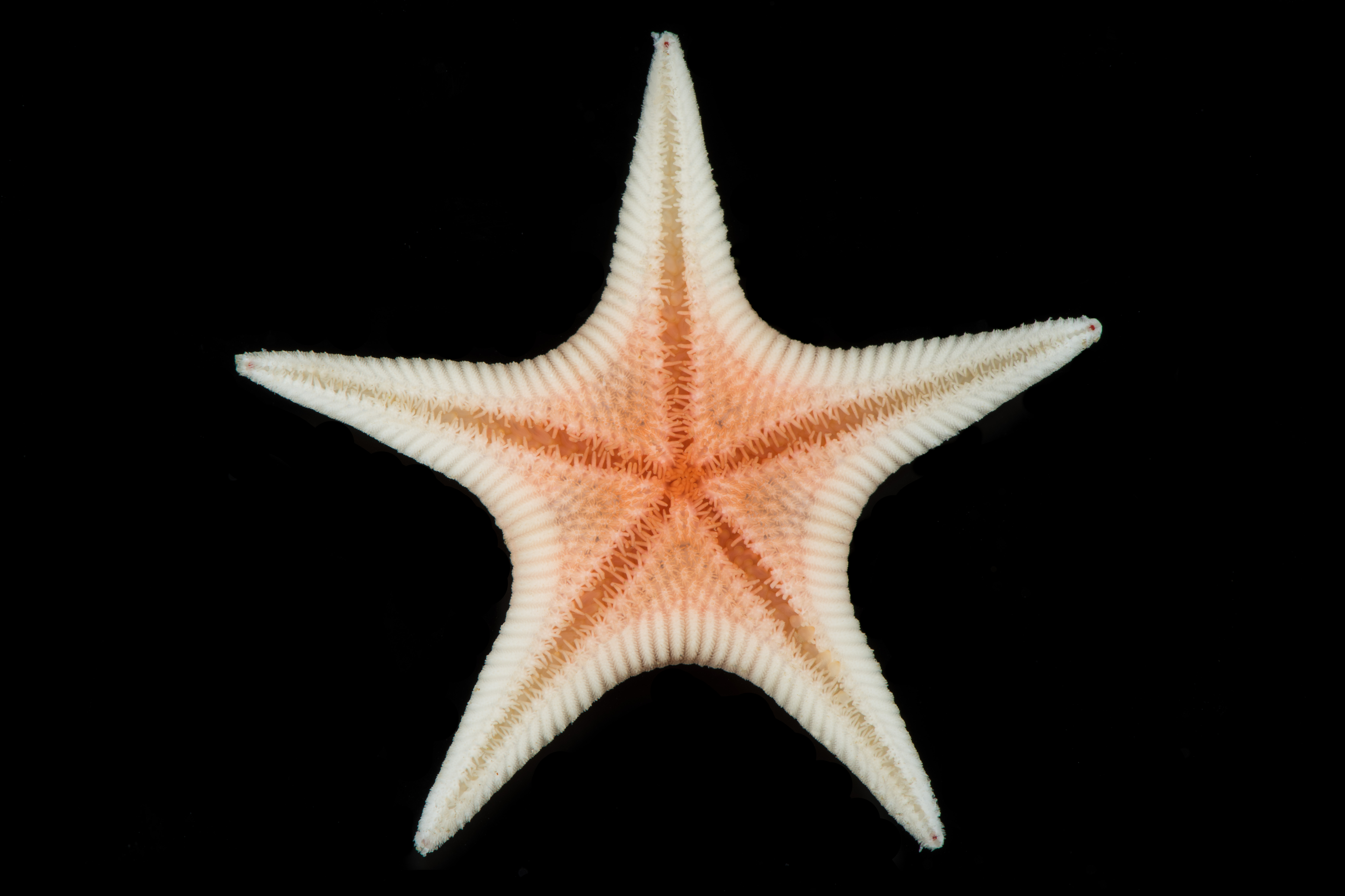 Oransje eller lyserød art med fem armer. Oversiden dekket med piggklaser. Markante marginalplater med små korn, hvorav de øvre platene er kortere enn de nedre. 3 furepigger.