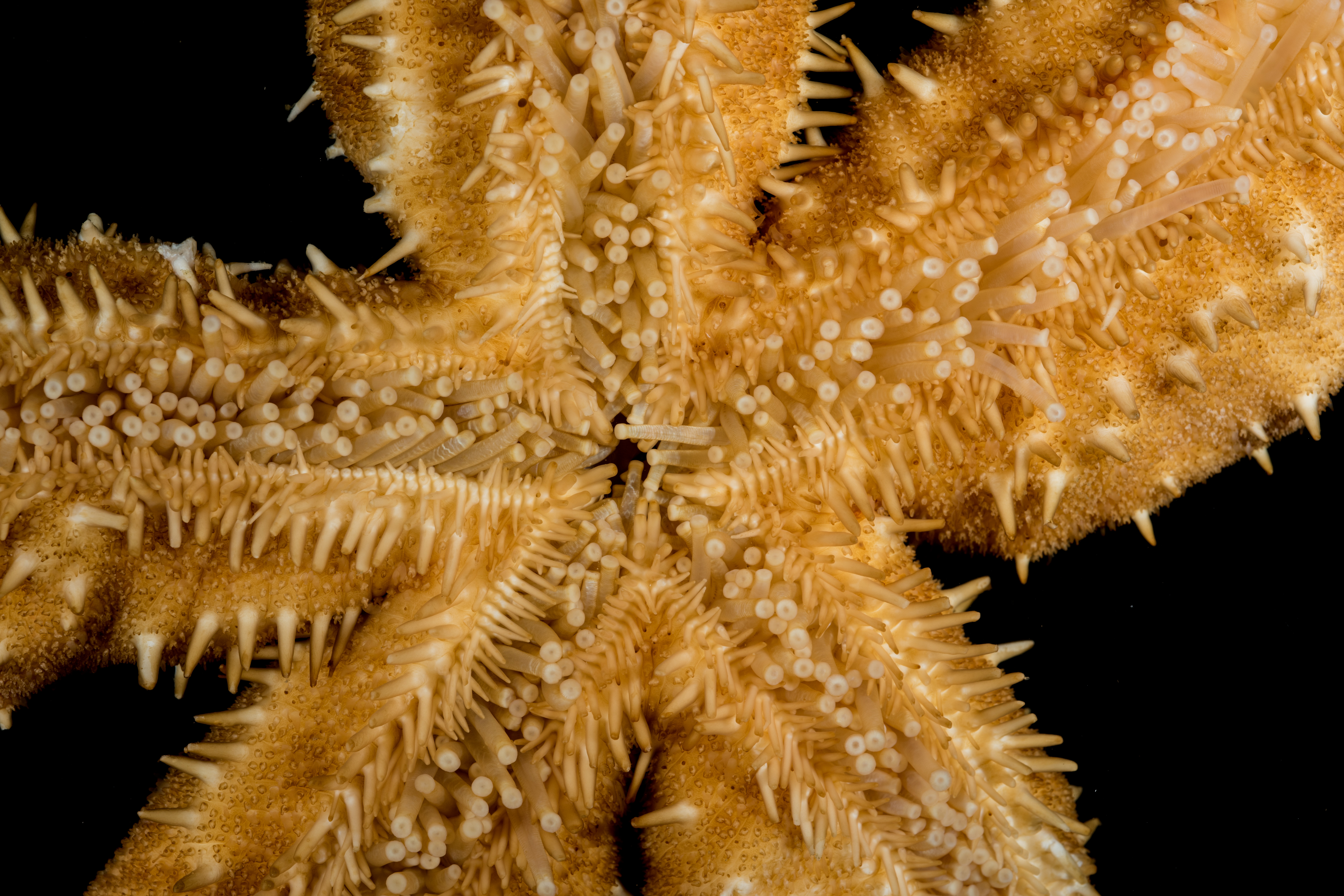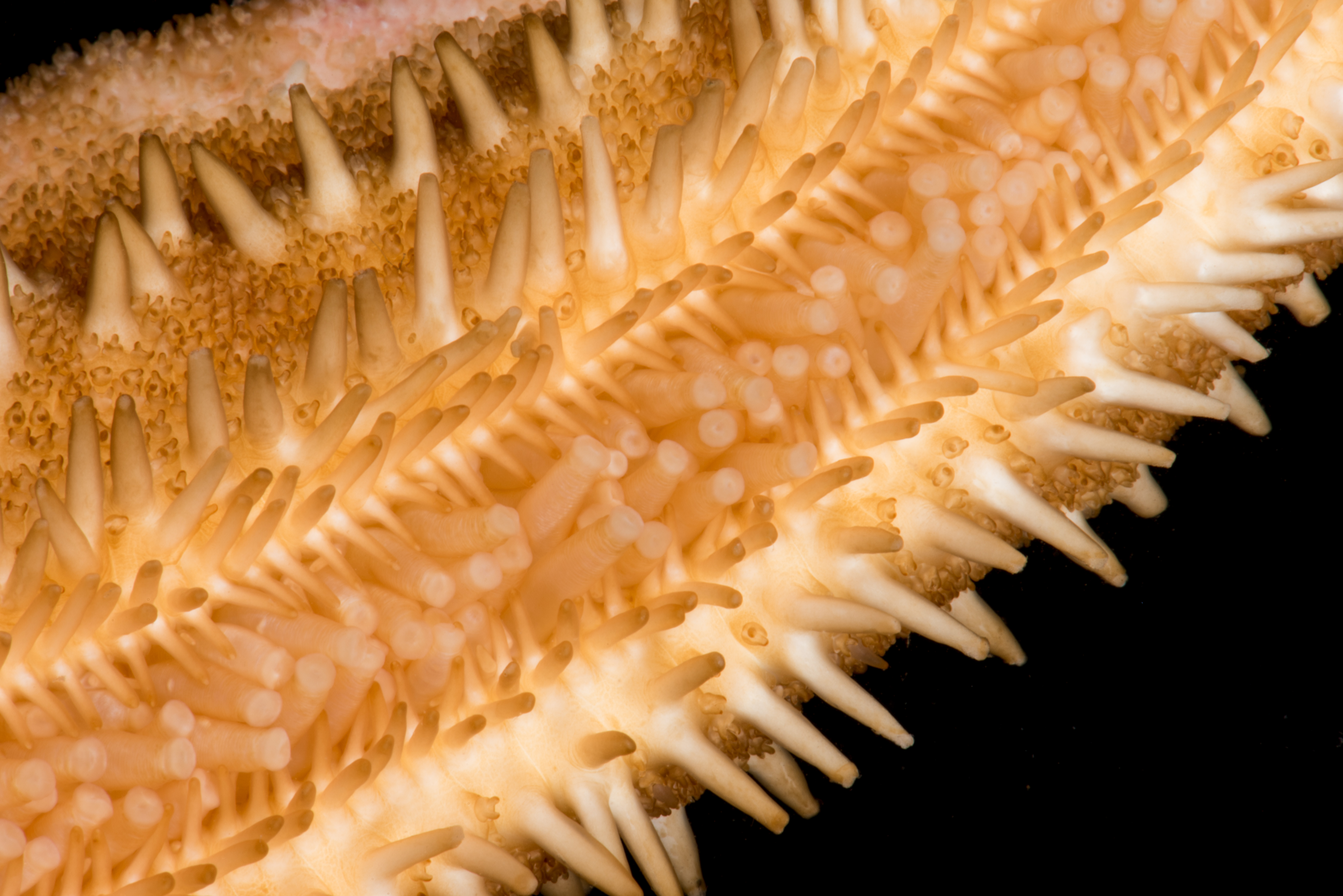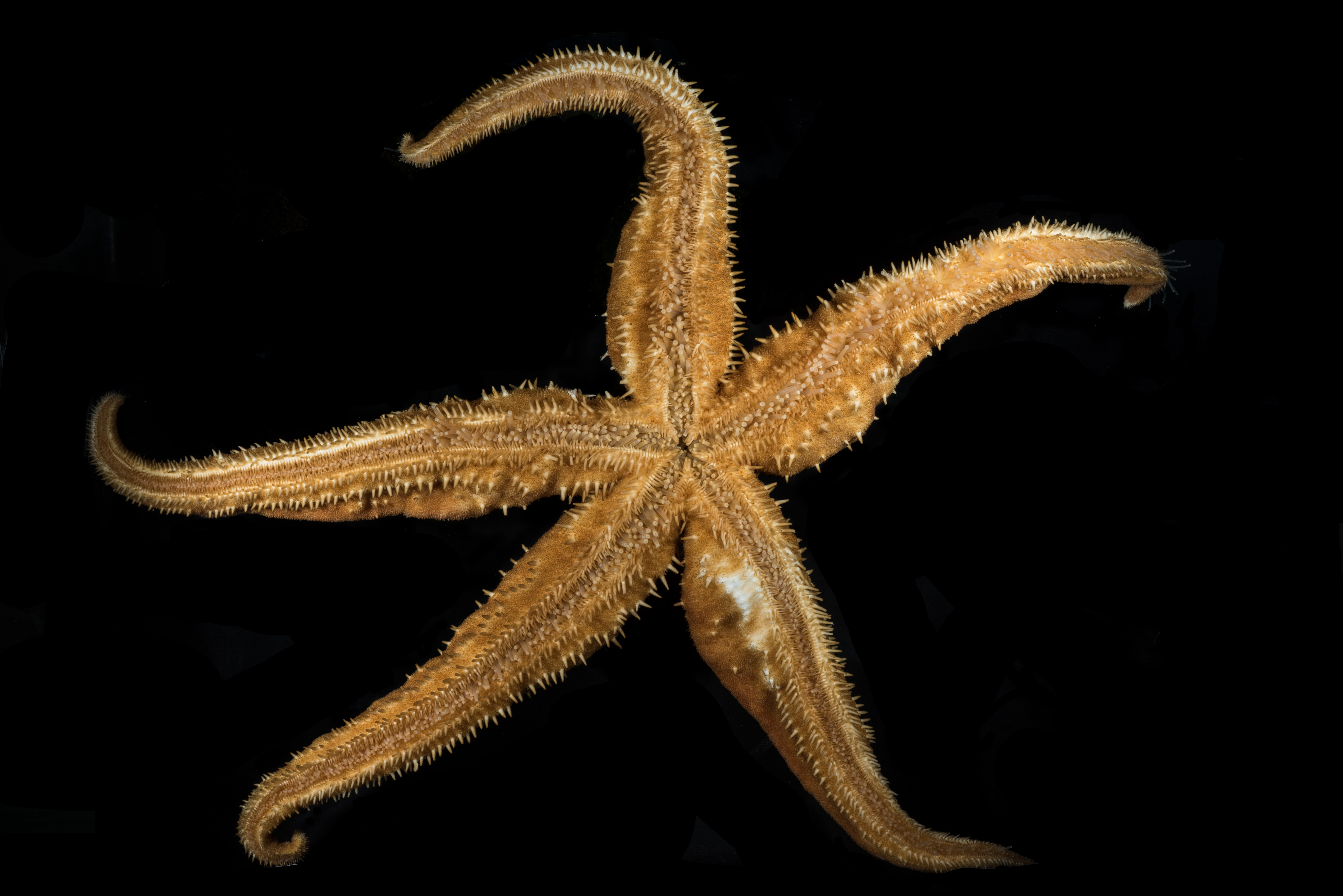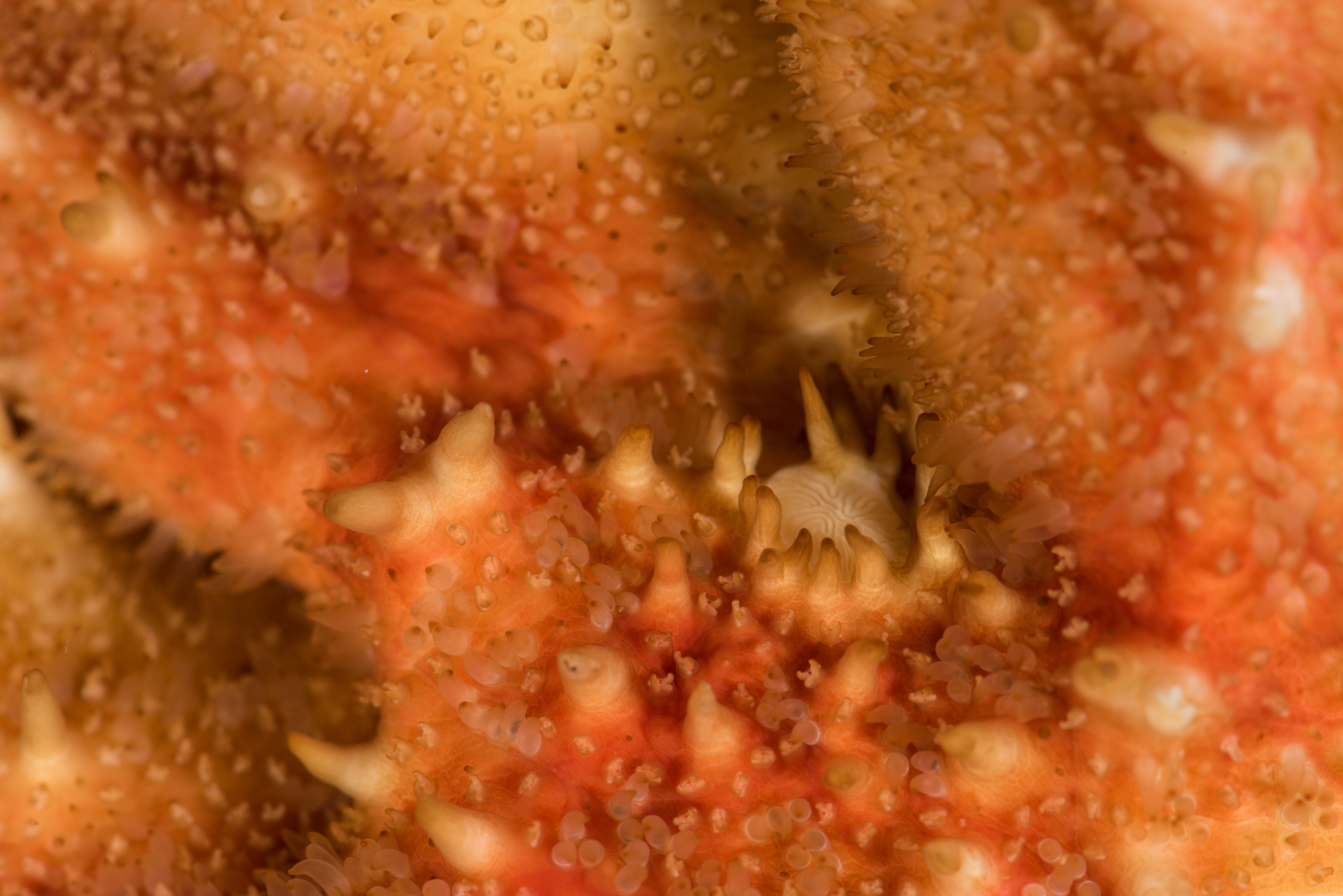 Rød på oversiden og hvitaktig under. Den har lange armer i forhold til skiven. En markant, rettlinjet rad med pigger går langs midten av armene (carina) på oversiden. Den har også en rekke med større pigger marginalt, som ikke har gripetenger rundt seg. Sugeføtter i 4 rader. Adambulakralen med 3 pigger per plate.