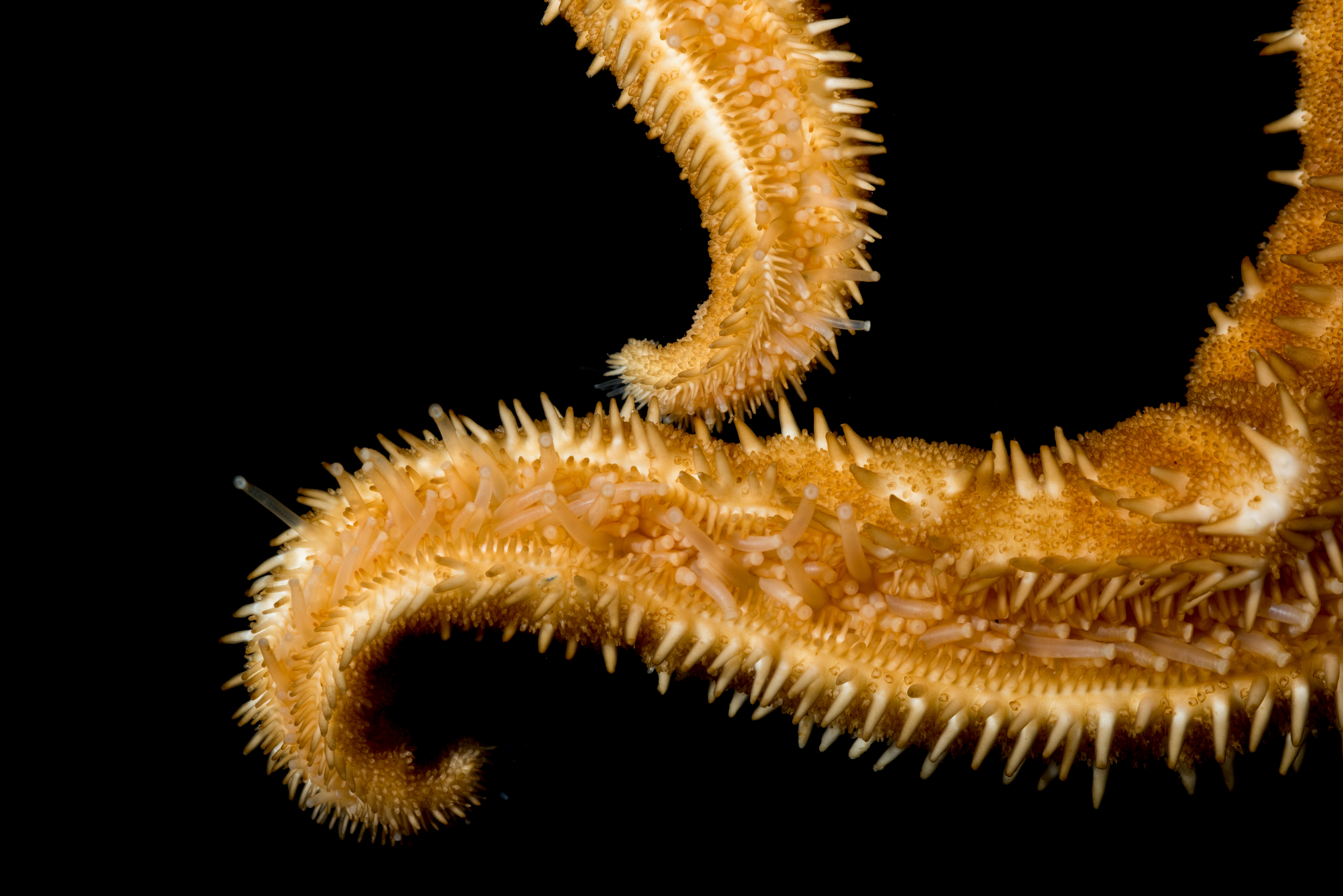 Rød art med lange armer, og en rettlinjet rad med pigger på midten av hver arm. Marginalpiggene er markante, og har ikke gripetenger rundt seg. Sugeføtter i 4 rader, og 3 pigger per adambulakralplate.