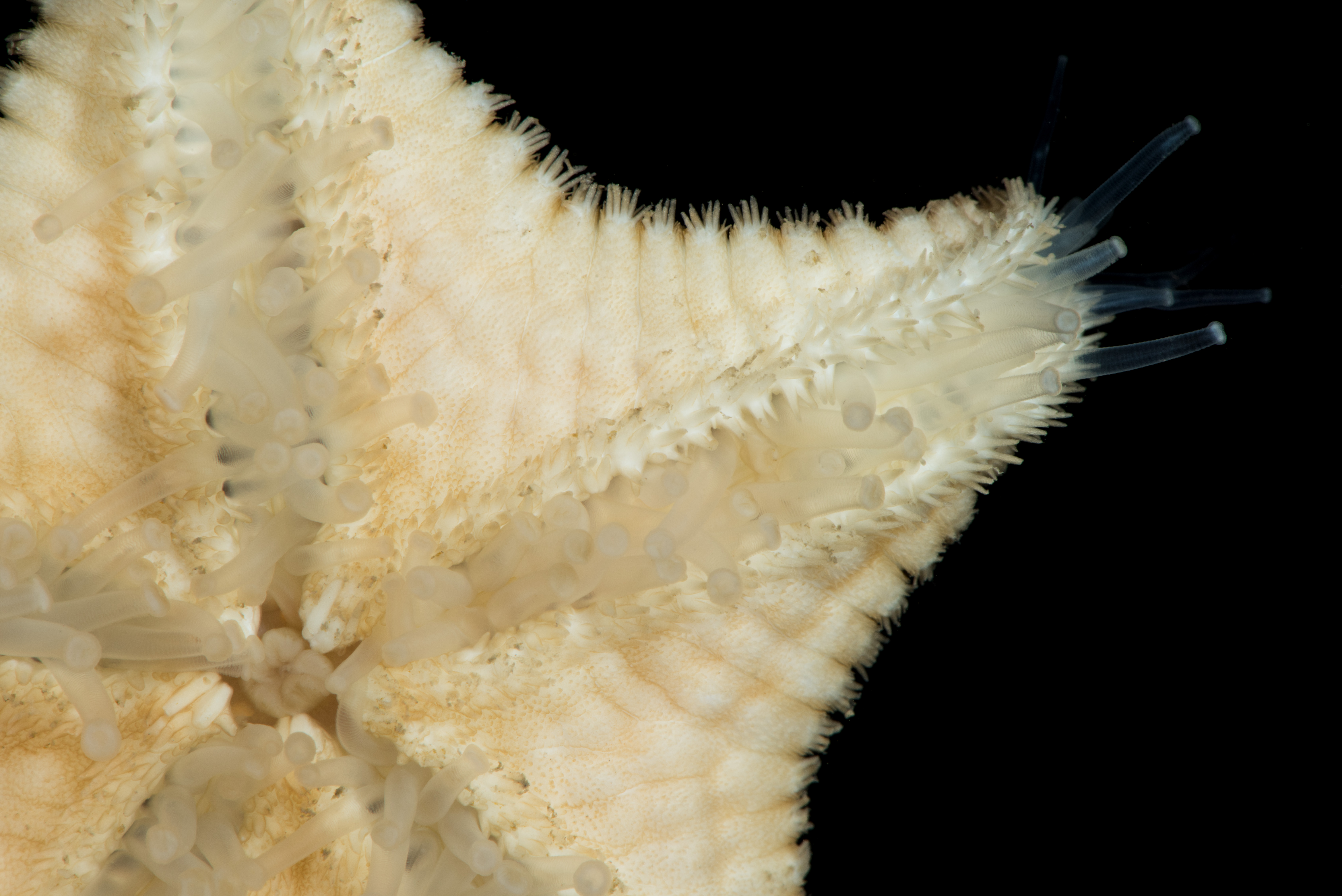 Poraniomoprha hispida: stjerneform; marginalplatene danner blokker; 15-20 gassblærer per område; små pigger dorsalt.