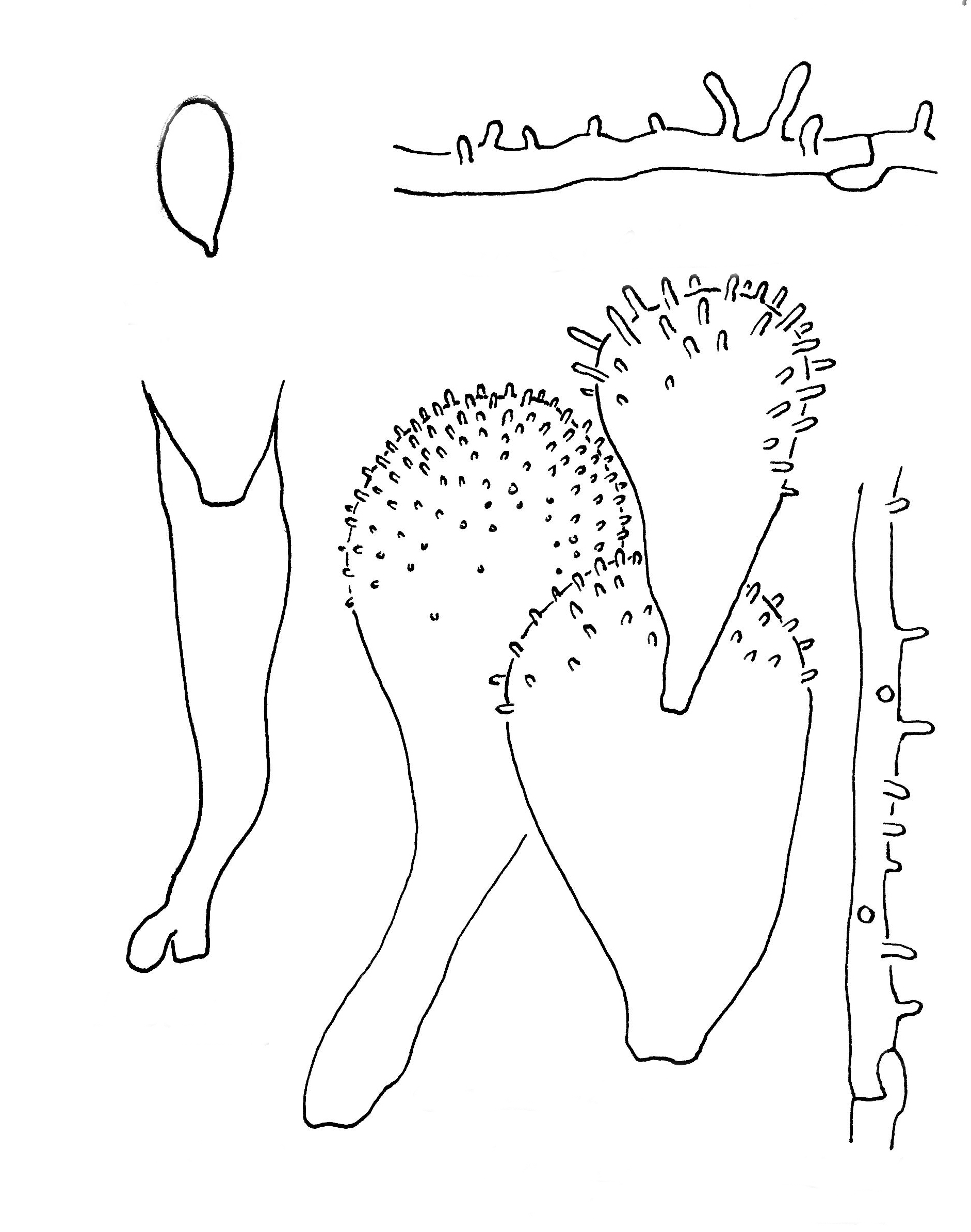 Spore, hatthudshyfe, cheilocystidier og stilkhudshyfe.