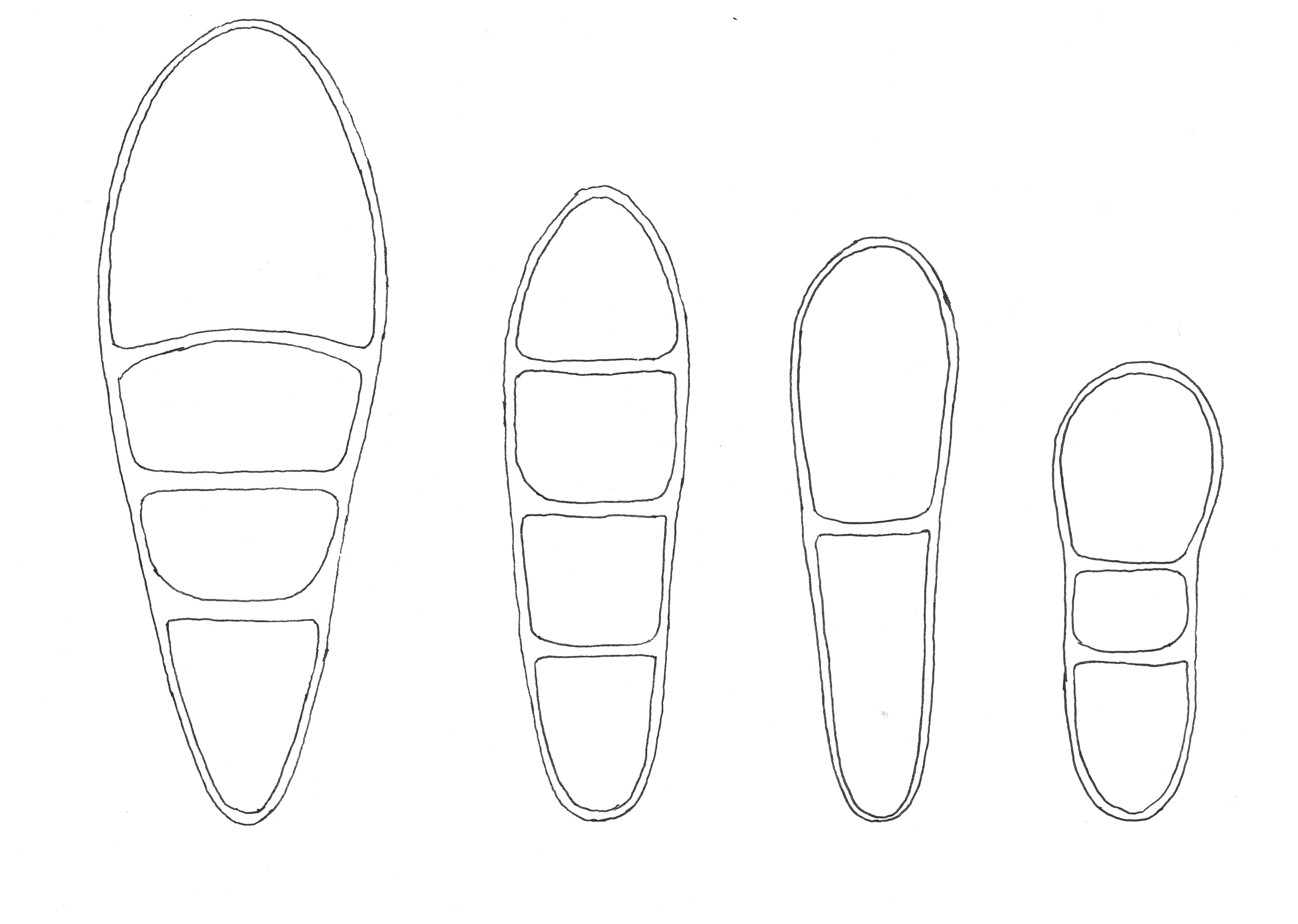 Figur 2. Sporetegninger, fra venstre mot høyre: Stjerneflekklav Arthonia stellaris, stråleflekklav Arthonia radiata, vierflekklav Arthonia apatetica og honningflekklav Arthonia helvola. Sporen til honningflekklav er 10 µm lang.