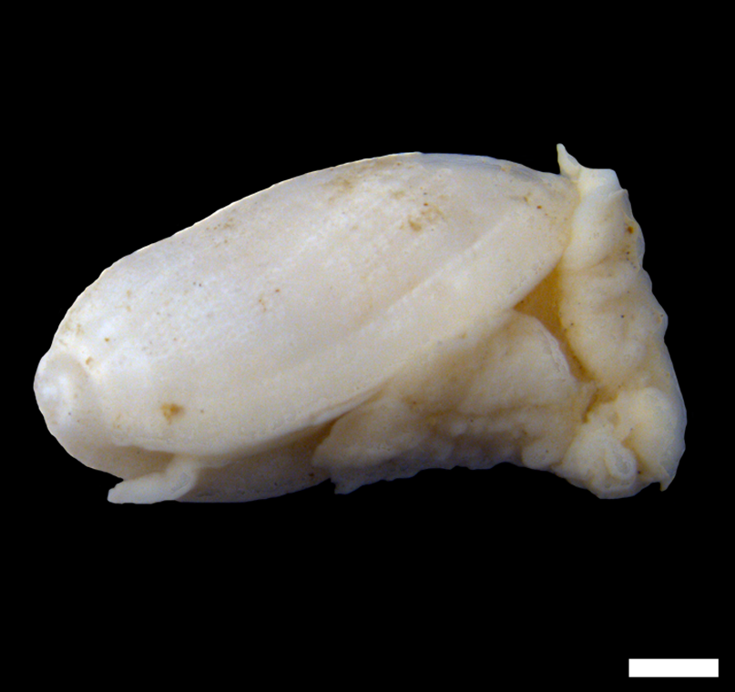 Skallets ventralside (automontage bilde), målestokk = 1 mm.