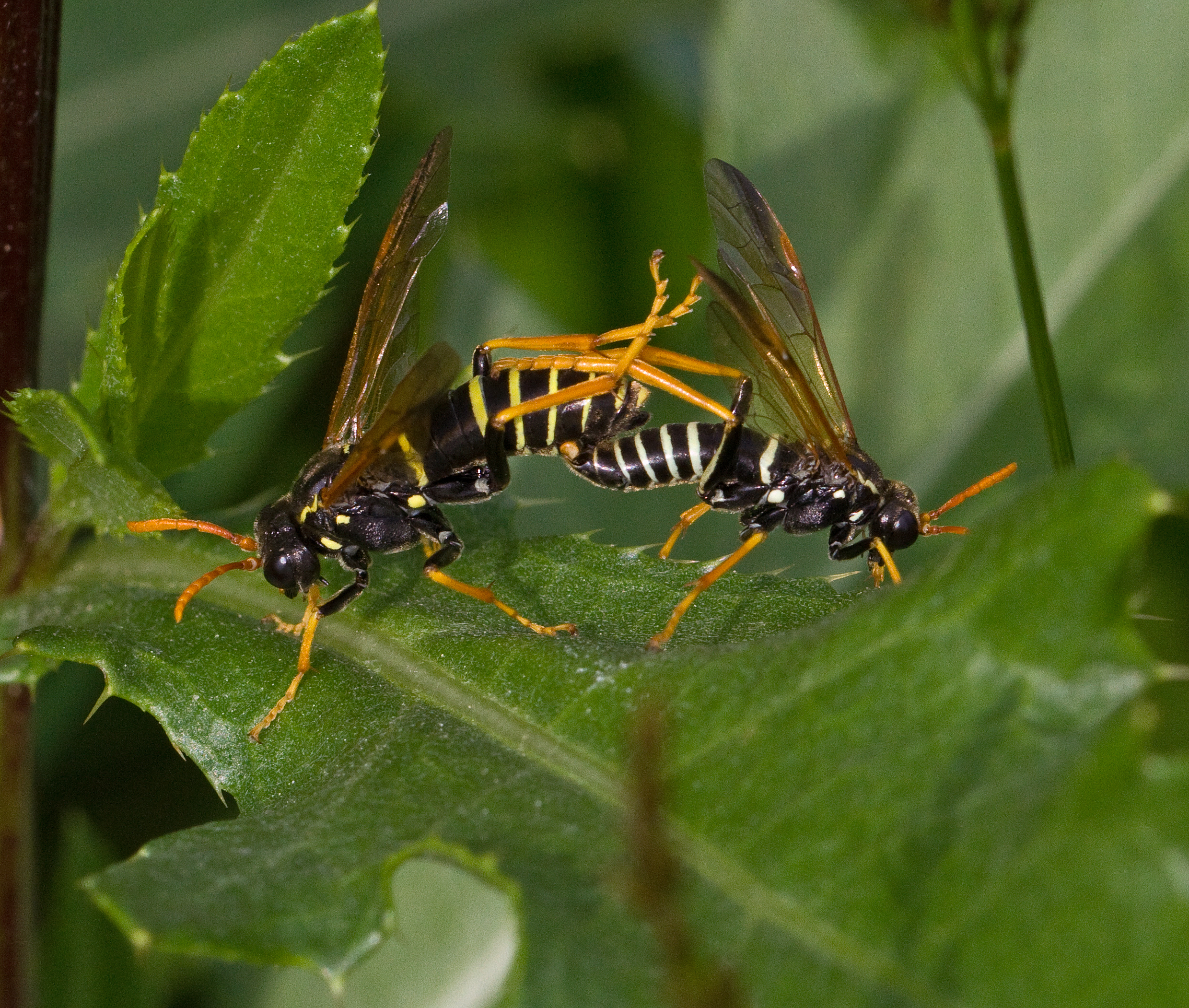 Tenthredo scrophularia hunn og hann i paring. Risleviga, Flekkerøya, Kristiansand, Vest-Agder, Norge. 08.06.2014.