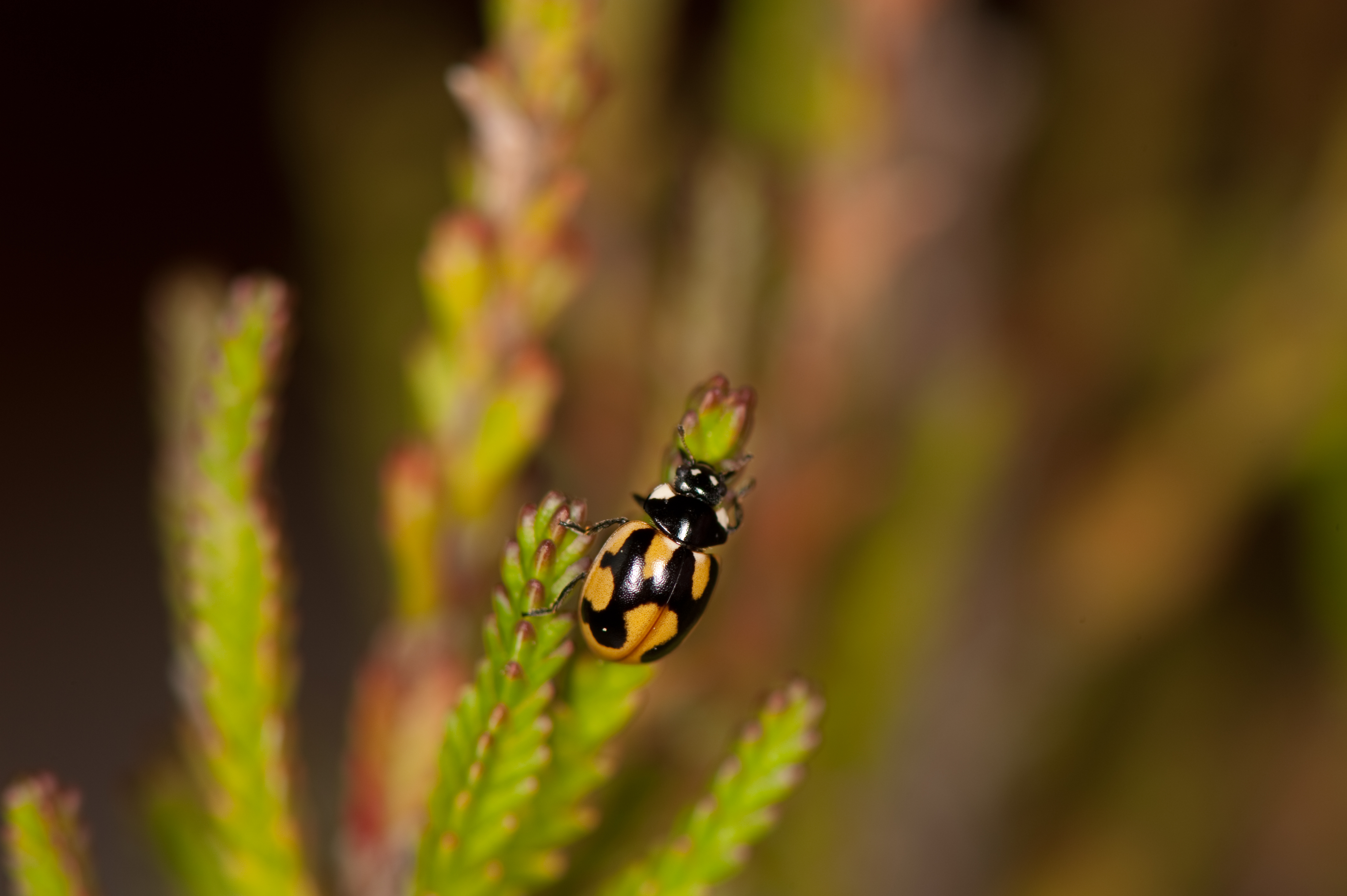Hieroglyfmarihøne Coccinella hieroglyphica på røsslyng.