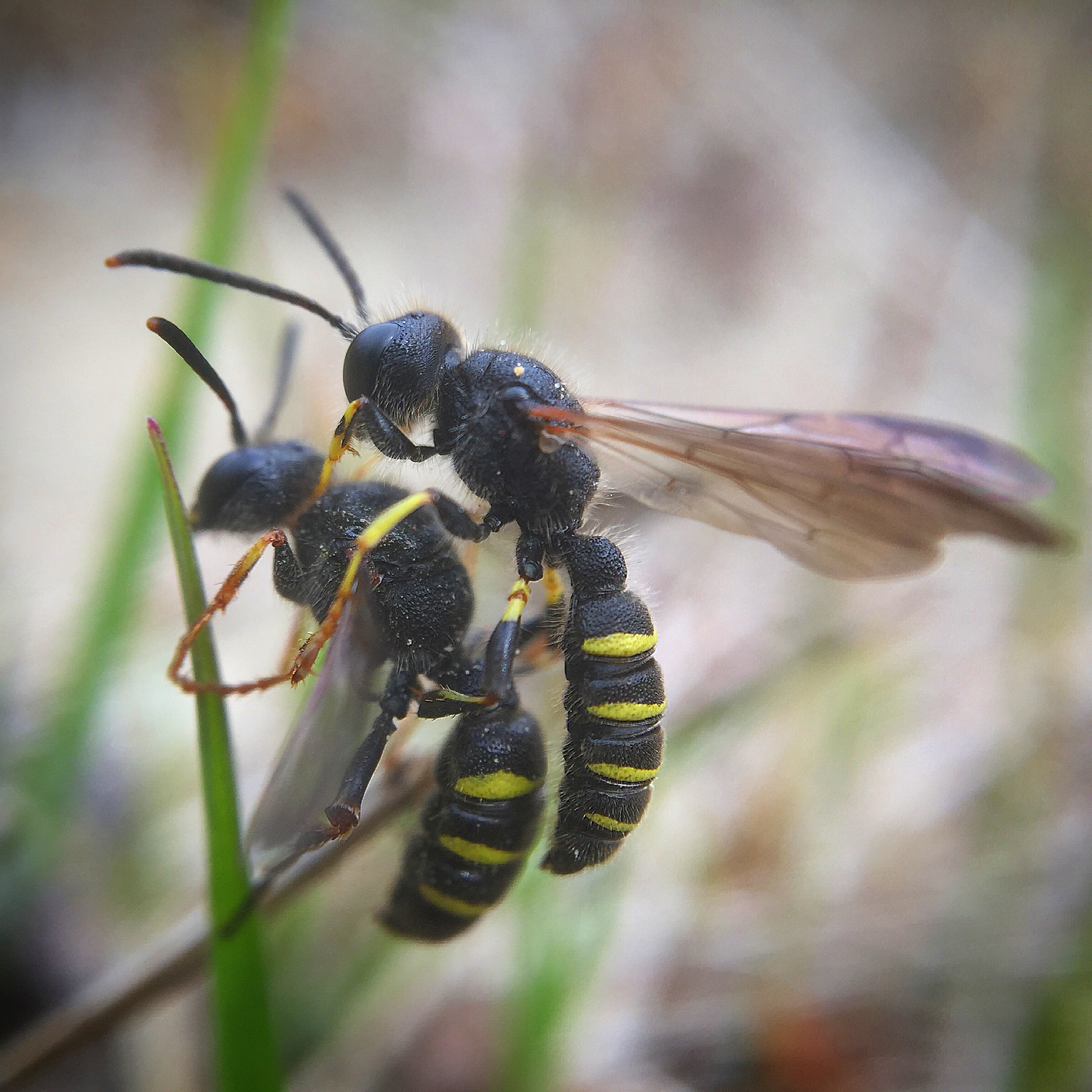 Hunn av liten sandgullveps Hedychrum niemelai. Skala = 1 mm.