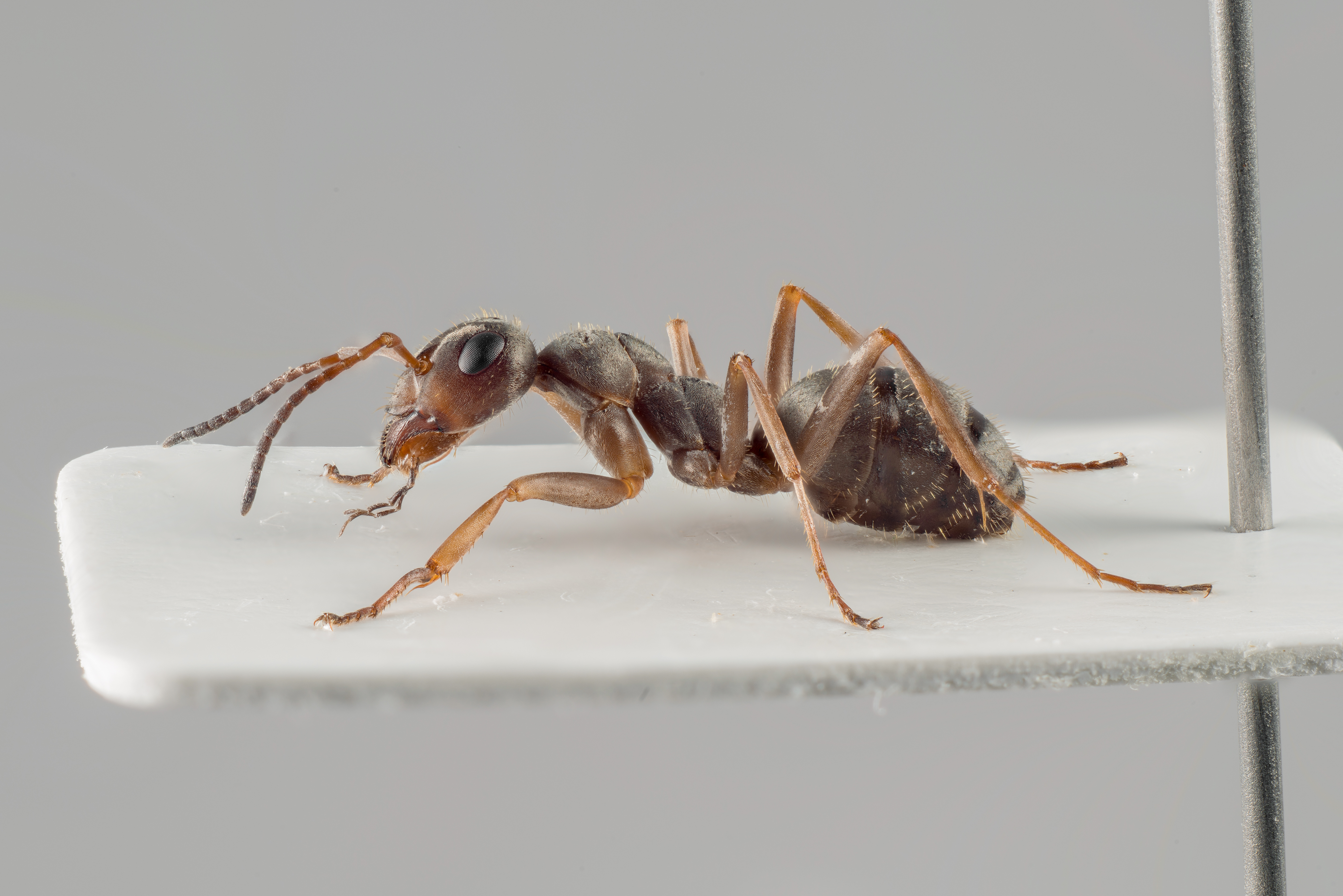 Arbeider av grå sauemaur Formica cinerea, fra siden.