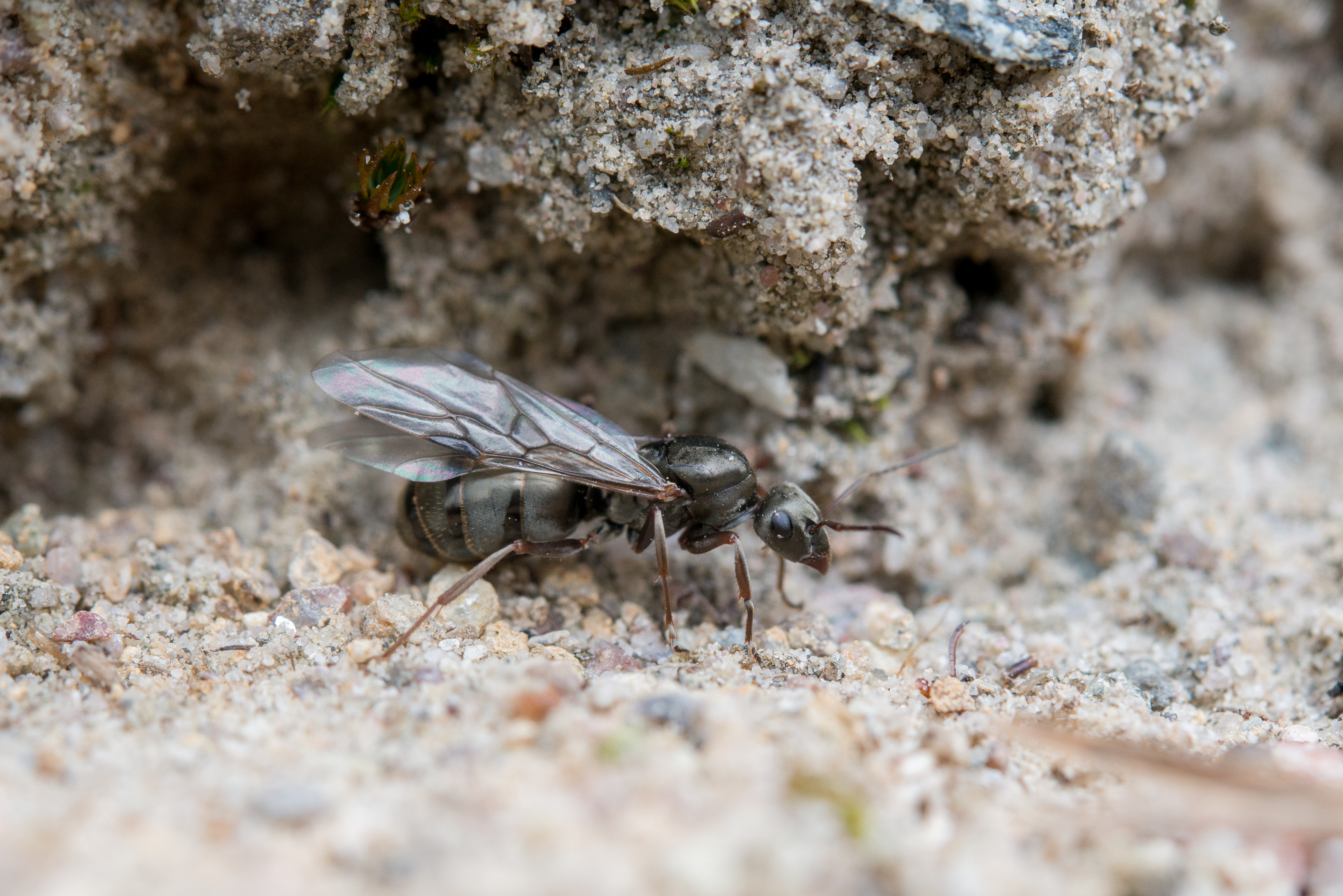 Nyklekt dronning av grå sauemaur Formica cinerea. Starmoen, Elverum i Hedmark.