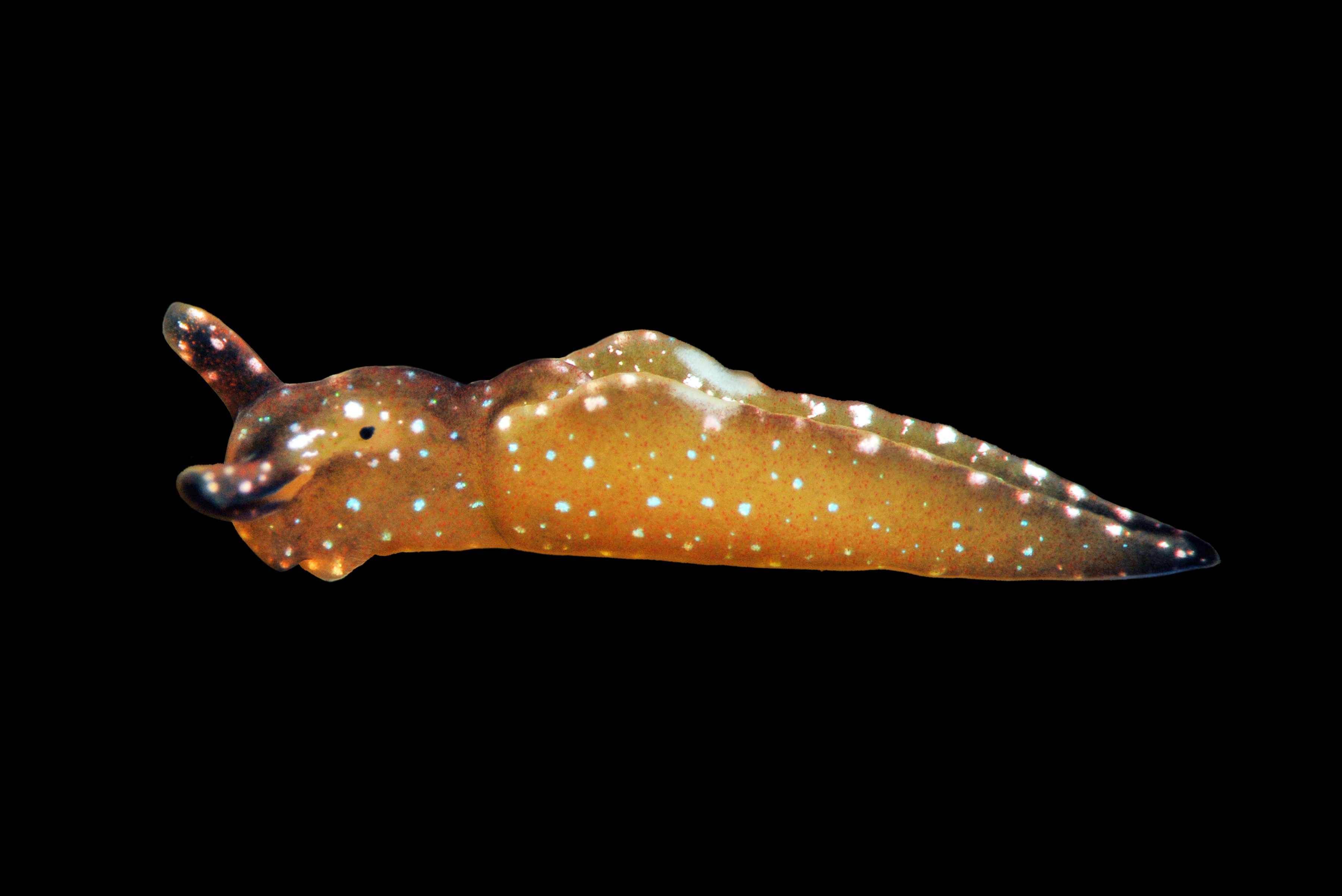Arten er en phycozoa, det vil si at den har egenskaper til å ta opp kloroplaster fra grønnalger i fordøyelsen, og beholde disse som solceller i egne tarmkanaler i parapodiene. Studier har vist at det kun er kloroplaster fra grønnalgen pollpryd Codium fragile som egner seg til kleptoplasti, fordi de har store nok celler som arten kan suge kloroplaster fra. Kloroplastene tas opp av fordøyelsescellene i sneglen og fraktes ut i parapodiene som fungerer som enorme solcellepanel. I og med at kloroplastene ikke er i stand til å reparere seg selv, brukes de opp over tid, og sneglen er nødt til å fornye lageret av kloroplaster i tarmene etter hvert som de brukes opp.