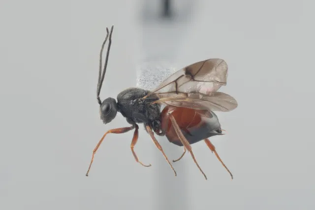 Hunn av Diplolepis rosae. Kan bestemmes på vingemønster.