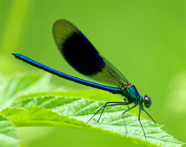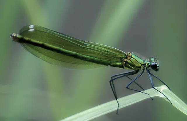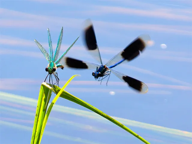 Båndpraktvannymfe er en vakker blåmetallisk vannymfe med et blått bånd over vingene og flagrende, sommerfuglaktig flukt.