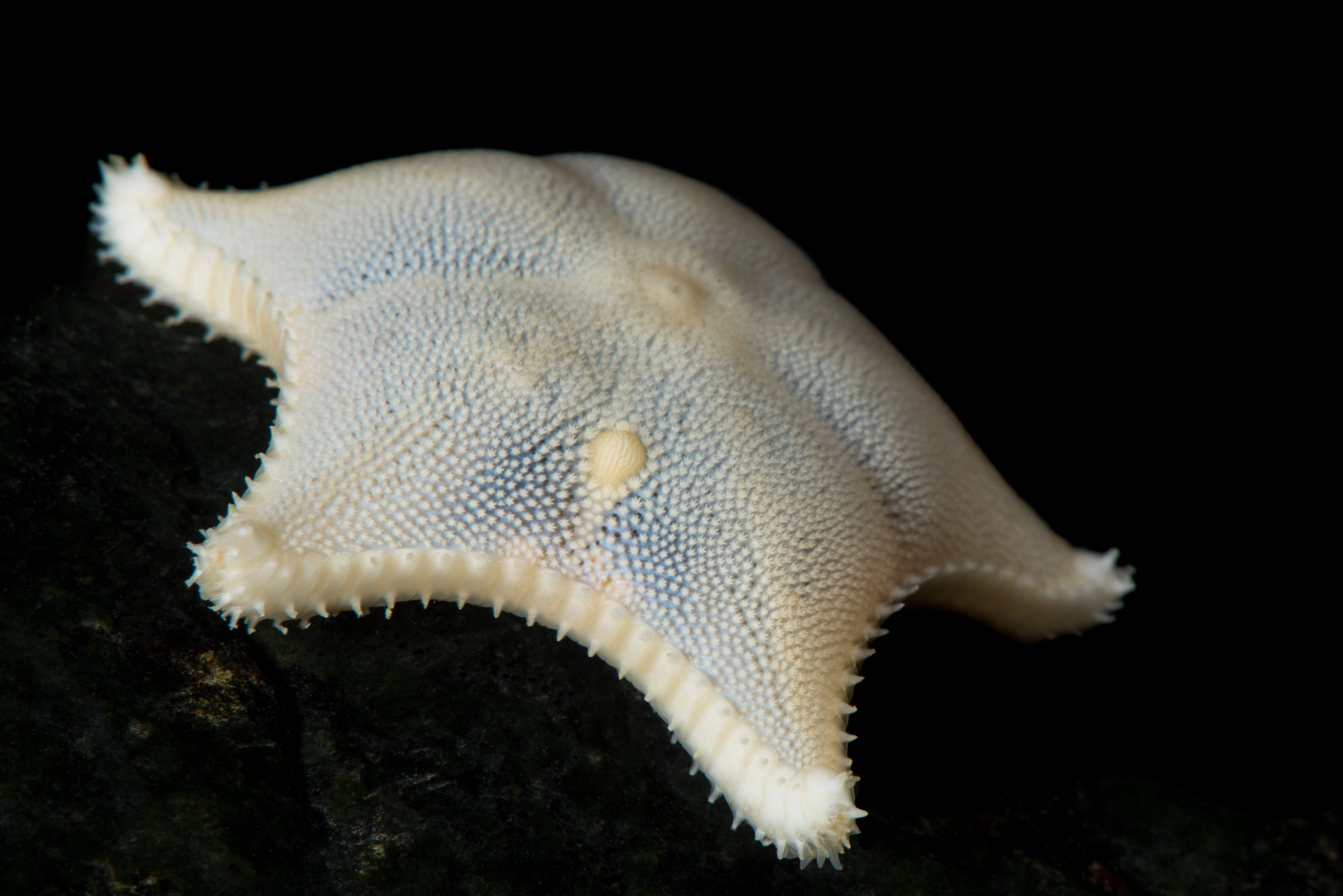 Guloransje art med kribriforme organ langs siden. Oversiden dekket med pigger i klaser (paxilla). 3-5 furepigger.
