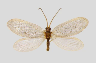 Hemerobius stigma er en meget vanlig bladlusløve, knyttet til nåletrær.