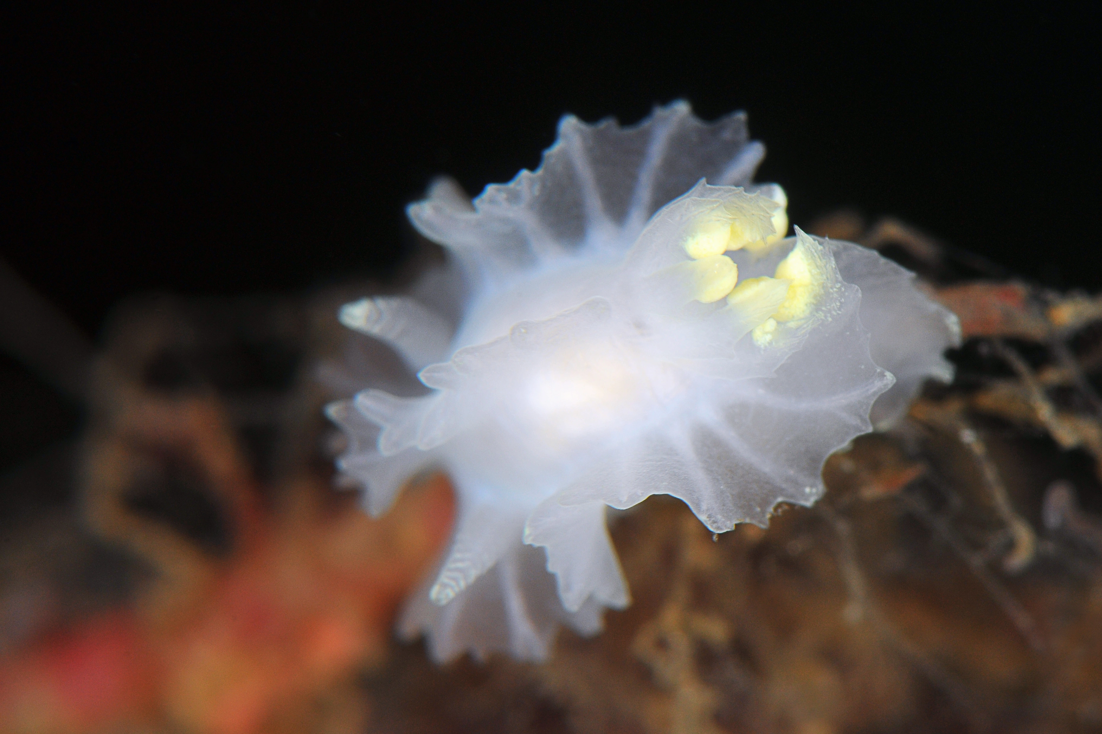 Denne hvite og gule nakensneglen har et svært karakteristisk utseende. Den regnes som svært sjelden og er bare funnet noen få steder langs kysten, men kan være tallrik lokalt.