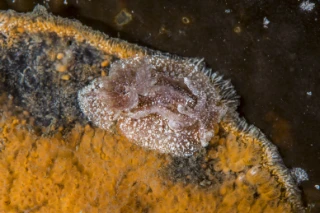 Pelagella castanea er lett å kjenne igjen på den rødbrune til mørke brune kroppen med en bred kappekant rundt. Den lever på grunt vann i tareskogen der den spiser på sjøpung. Selv om arten kan bli stor, opptil fire cm lang, er den vanskelig å få øye på, da den brune fargen ofte går i ett med bakgrunnen.
