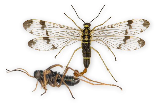 Skorpionfluene har fått sitt navn etter hannens karakteristiske, skorpionhaleliknende paringsorgan.