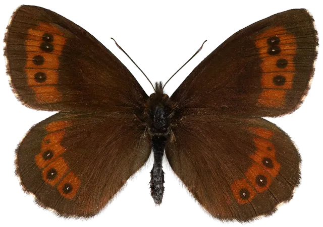 Vingeoversiden er fløyelsaktig brunsvart. Både fram- og bakvingen har et brunrødt bånd i ytre del som omslutter en rad med mer eller mindre utviklede øyeflekker eller prikker. På bakvingeundersiden er det et hvitt bånd som starter på framkanten og som vanligvis stanser før midten av vingen. Dette hvite båndet mangler hos de øvrige nordiske @(Erebia)-artene og er et godt artskjennetegn. Imidlertid finnes det individer hvor dette båndet mangler. Arten er likevel som regel lett gjenkjennlig på det brede brunrøde oversidebåndet som strekker seg over både fram- og bakvingen.