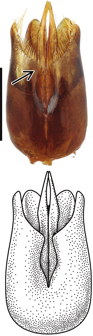 Genital capsule, dorsal view: C. solida ♂. Scale 0.5 mm.
