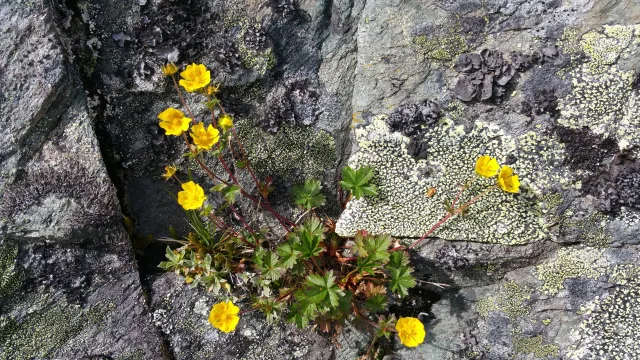 - Potentilla ×scandica Soják Potentilla alpestris Haller f. Potentilla crocea Hornem. Potentilla maculata Pourr. Potentilla scandica Soják Potentilla x scandica Soják Potentilla xscandica Soják Potentilla verna var. ternata A.Blytt Fragaria crantzii Crantz Potentilla gelida auct. non C.A.Mey. Potentilla grandiflora auct. non L. Potentilla verna auct. non L. Potentilla verna subsp. major Wahlenb. Potentilla crantzii var. ternata A.Blytt Potentilla crantzii var. crantzii